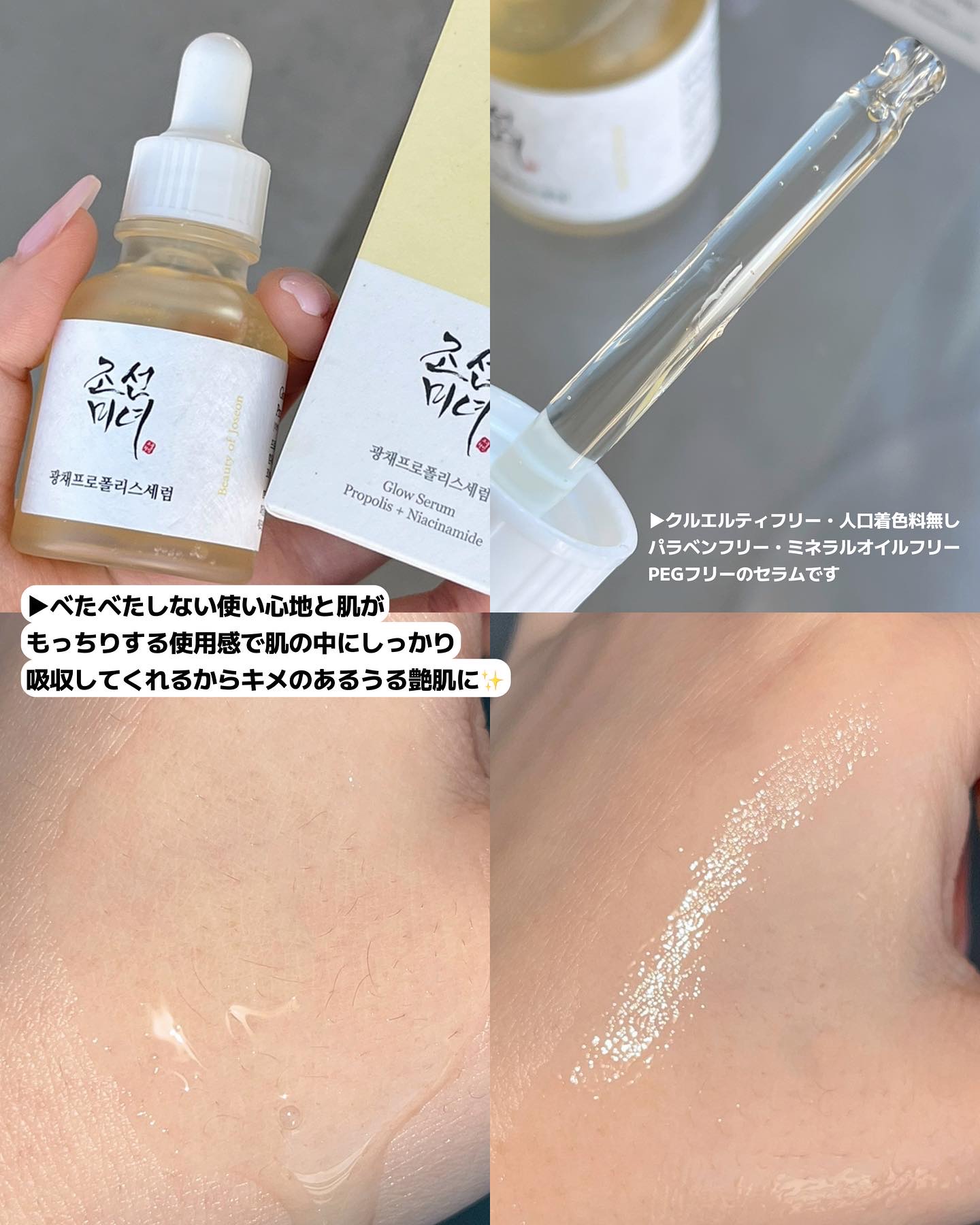 BeautyofJoseon 光彩プロポリスセラムおすすめポイント◯プロポリスとナイアシンアミド配合でニキビや毛穴ケアができる◯とろみのあるテクスチャーだけどそこまでベタつき感はなく、朝晩どちらでも使いやすい◯スポイトタイプなので一回分取りや...