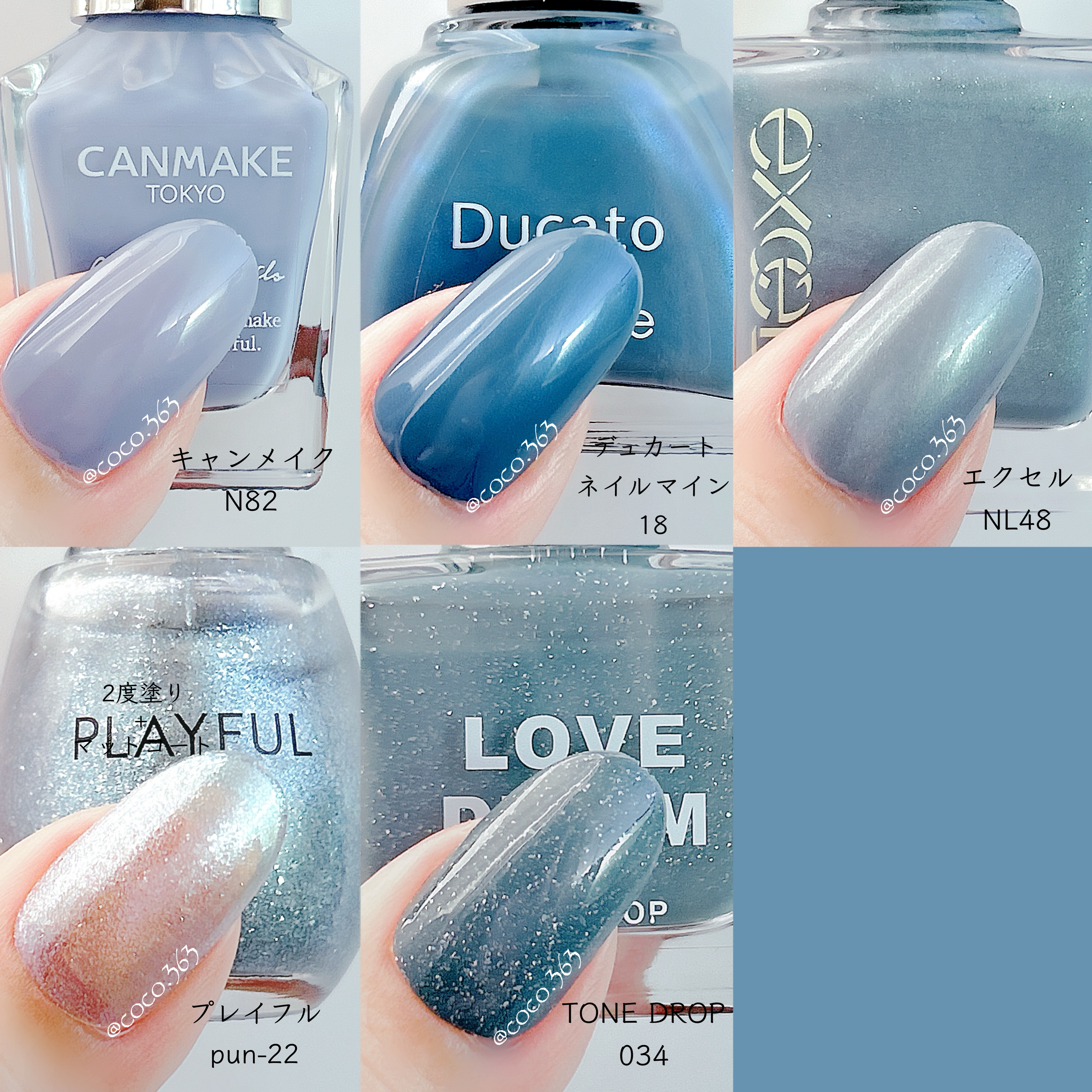 N28 スモーキーアクア N44 シックグレー N52 マーメイドスケール N57 インディゴブルー N82 クラウドレススカイ N85 9PMは以前の限定ですが amazon等のECサイトで 定価で購入できるので 気になる方はぜひ🫶🏻