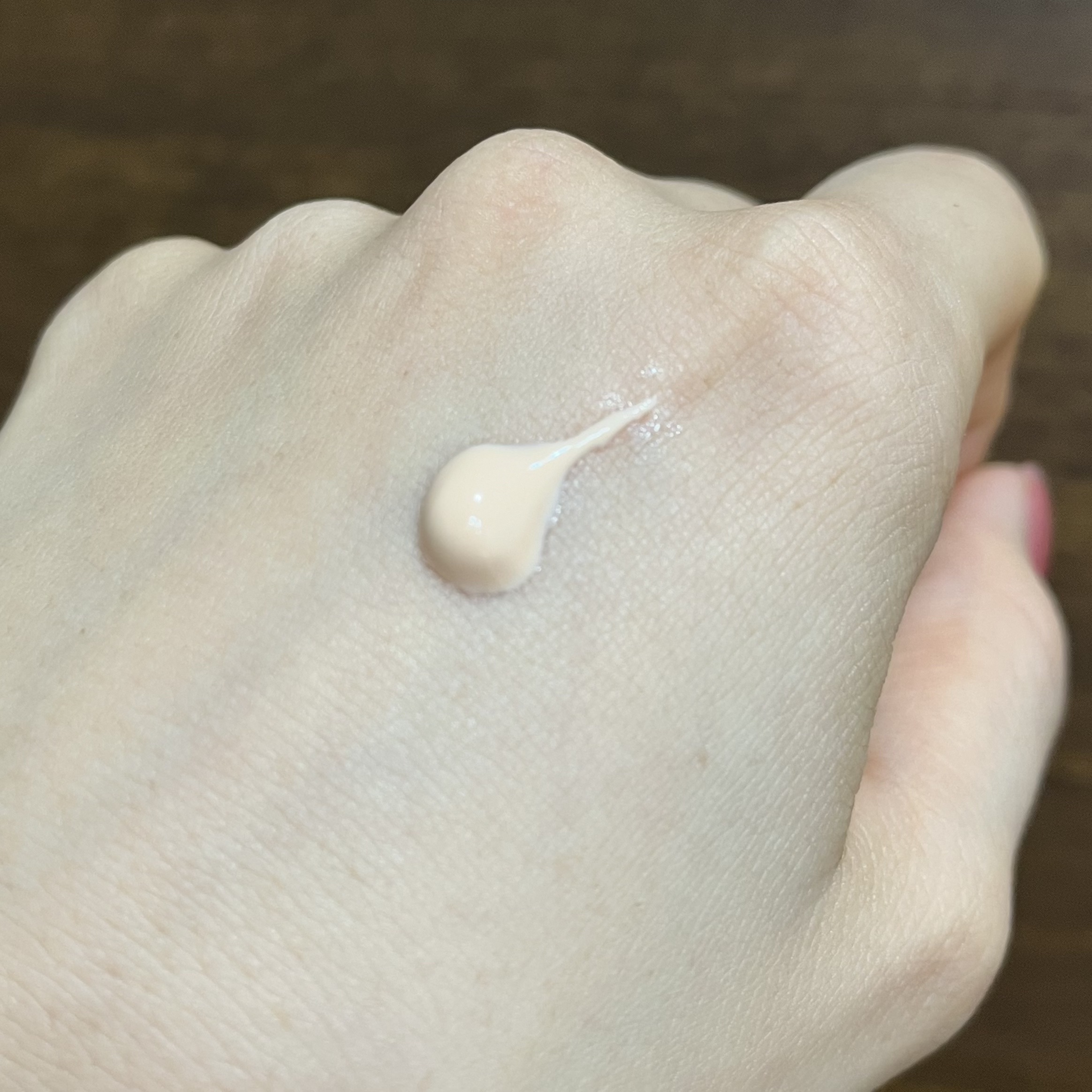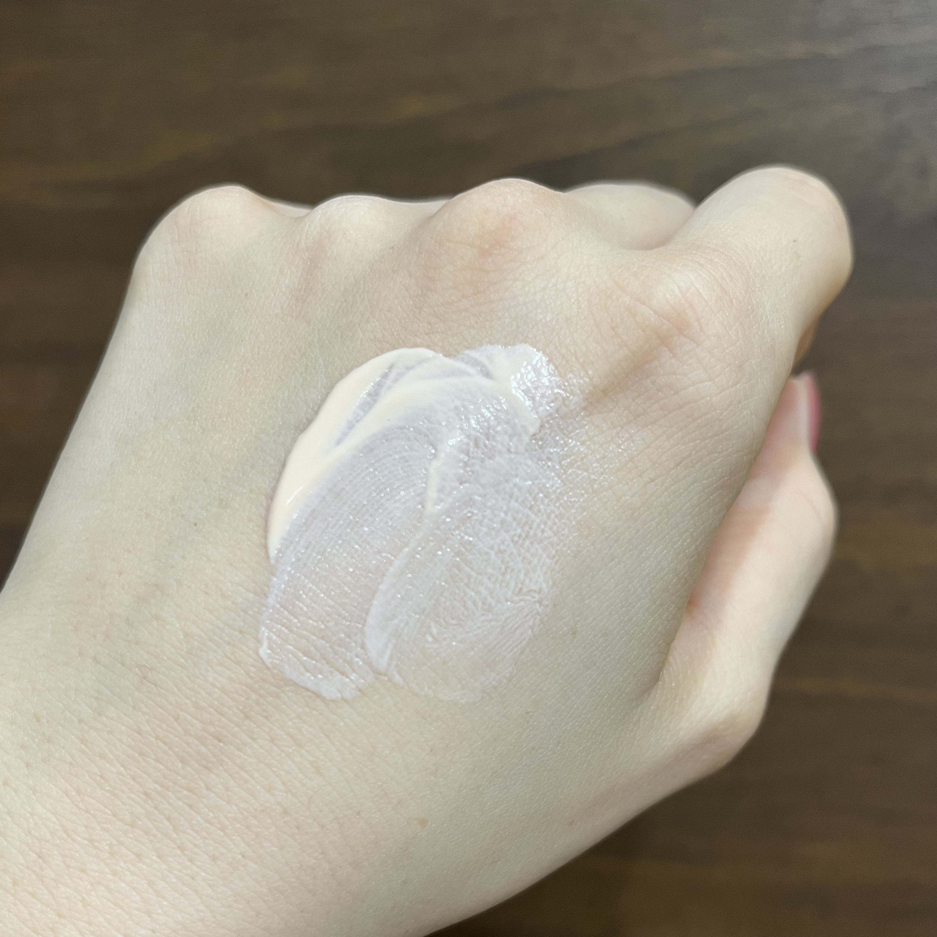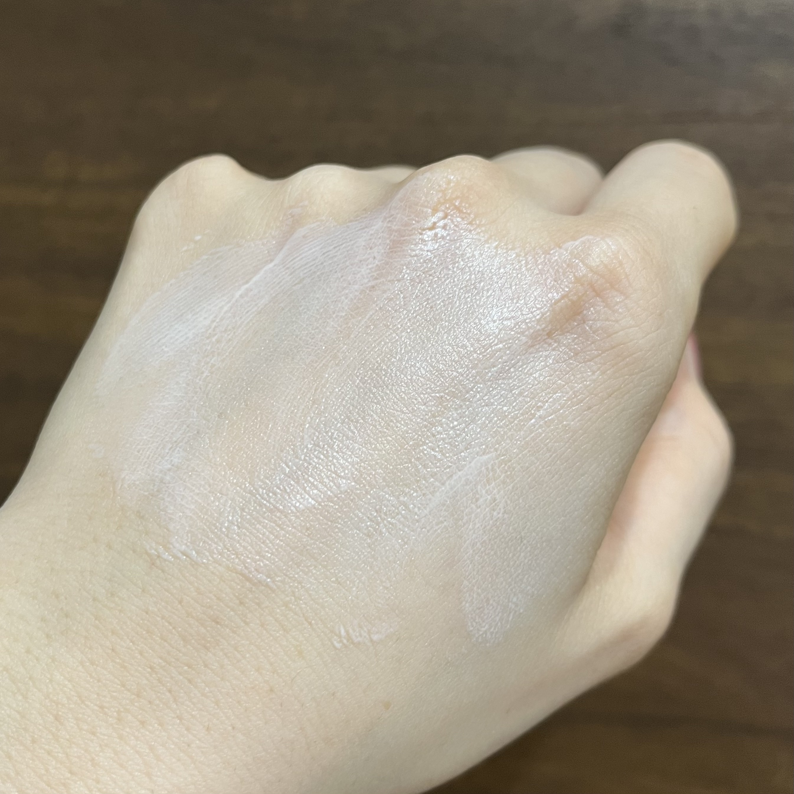 ジェルのようなテクスチャで塗り心地⭕️ 薄く伸び広がり、きしみやベタつきは感じません。 ペールピンク色でナチュラルに明るくトーンアップしました。 あくまでも自然、白くはなりません🤍 1つ目は香り。 クリアローズの香りがついてますが、これがかなり好みが分かれるかも。 2つ目はメイク後の乾燥。 これ単品だと適度にしっとり感があるけど、上からメイクするとすごく乾燥を感じました… 単品使用の時は汗をかいても白浮きしないけど、メイクを重ねると汗が白っぽく、粉っぽくなる💦