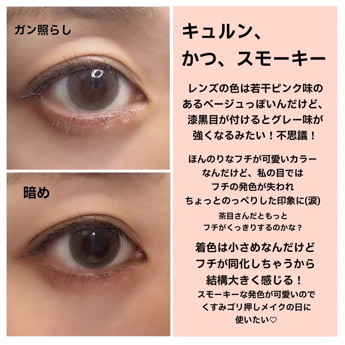 くすみモカブラウン×焦げ茶フチ のデザインが大人かわいいカラコンの紹介です♡ カラー名通り、メインカラーとフチのコントラストがロールケーキの断面みたいで印象的👍🏻 焦げ茶フチは輪郭がくっきり残っているので、くりっと存在感のある目元を演出してくれました♡