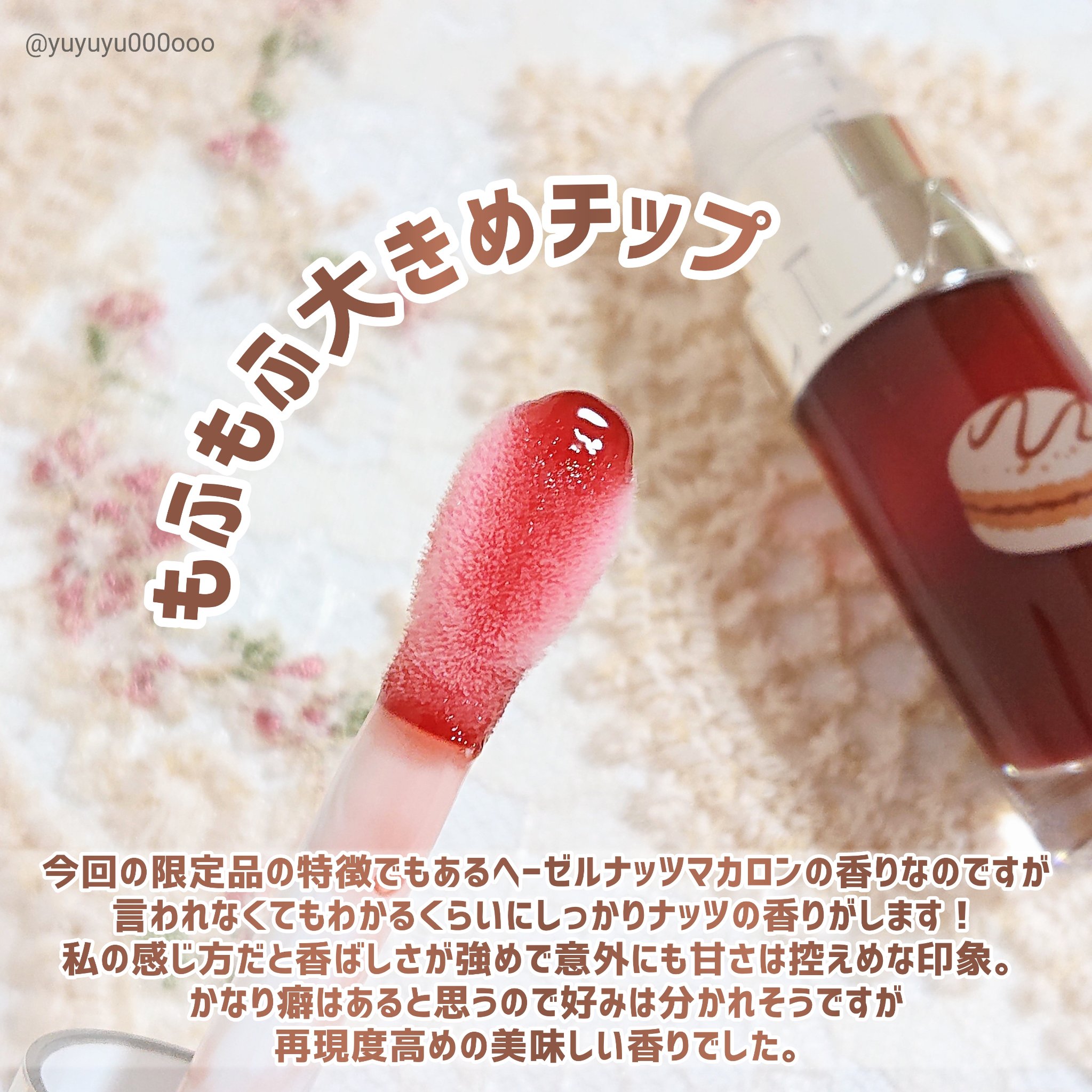 | さらっと塗れて、 唇にフィットしているような質感。高発色でベタつかず、キレイなツヤが出ます✨ . | 詳細を見る |