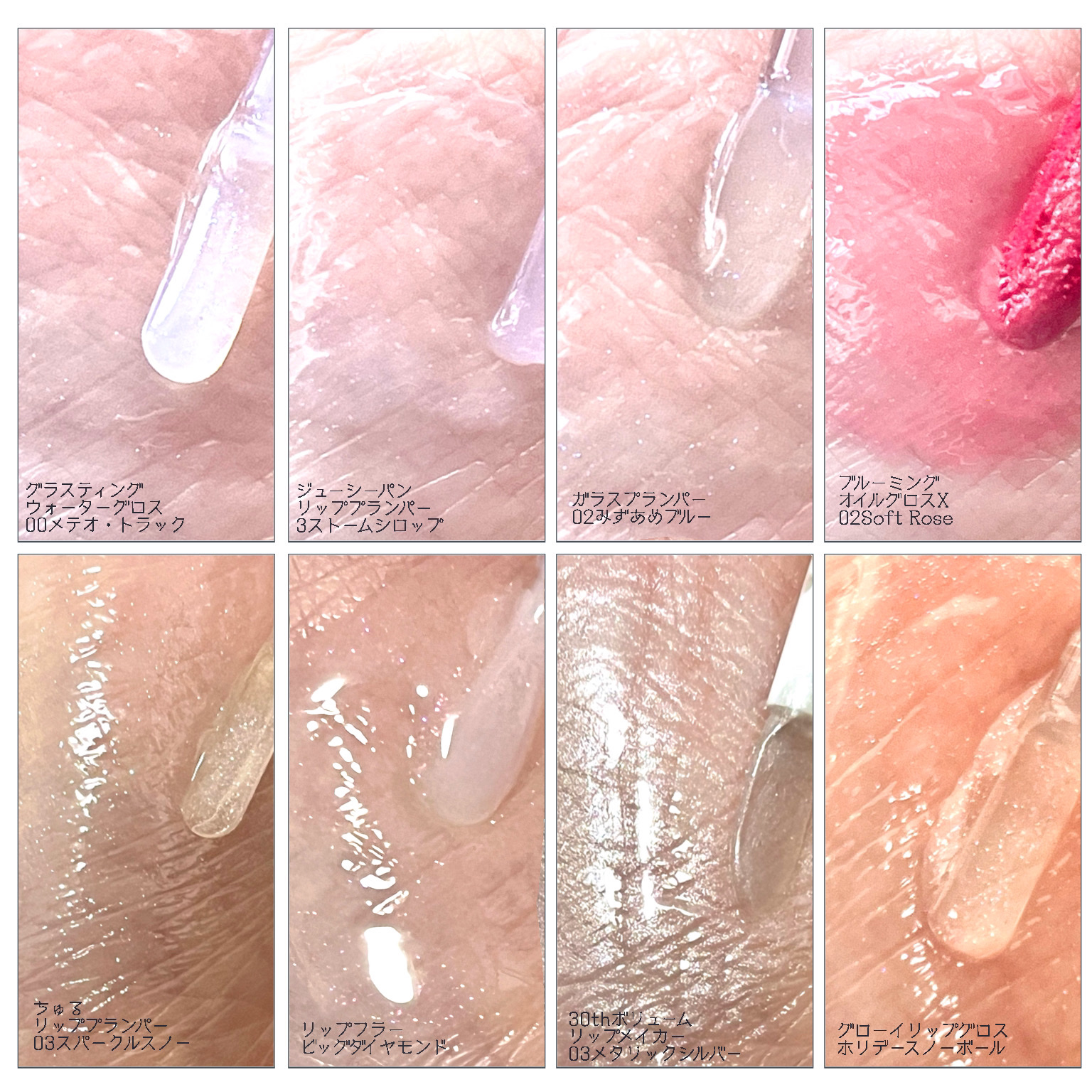 どのカラーもキラキラで透明感のあるブルーが可愛いです😊 この中だと1番密着感があります。 繊細なシルバーラメがぎっしり。 透明感があってみずあめのようなとろっとした質感。 口に入るとちょっと苦いです。
