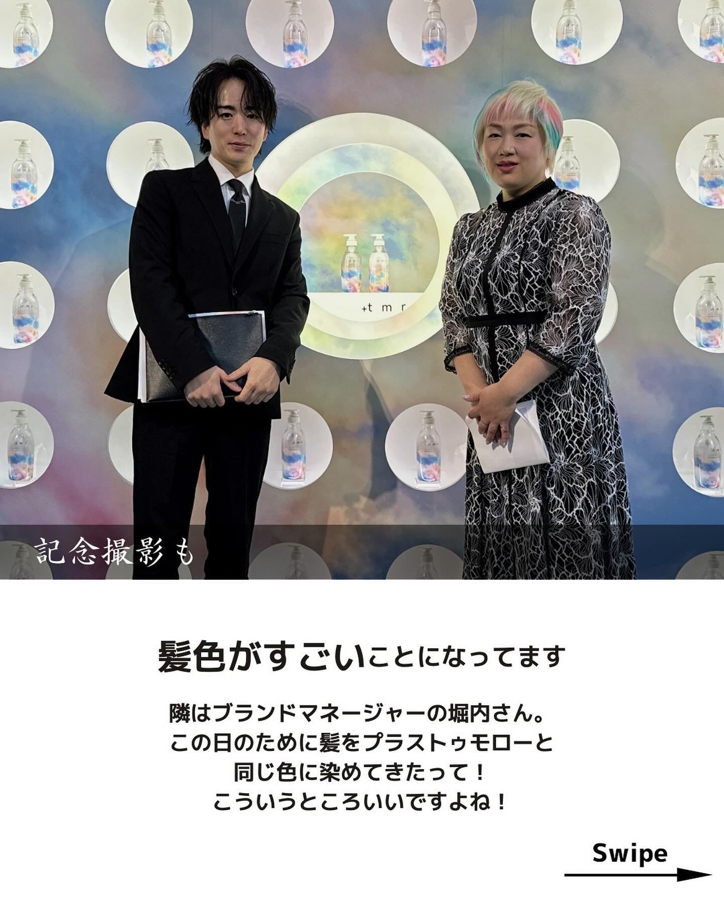 - 髪とタンパク質の関係に着目した「ネイチャープロテインCP処方※2」毛髪ダメージを補修し、髪本来がもっているしなやかさを引き出します 処方アプローチ: しなやかな「頬ずりしたくなる髪」へと導くタンパク質全方位アプローチ※4 ♦ダメージを受けた髪の「空洞化」にも着目。 ダメージホールさえも、タンパク質のもととなるアミノ酸で補修し、成分を抱え込める状態へ。 ➢ ダメージを受けた髪は、スポンジのように毛髪内部が空洞化。髪に元々蓄えられている成分が流失しダメージホールが発生します。また、穴があいた状態ではいくら内部を満たすかのように成分補給をしても、ため込むことができず流れ出る状態に陥ります。 +tmrはタンパク質の元となるアミノ酸(アルギニン)でダメージホールを補修。成分を抱え込み、髪をみっちりとした状態へと導きます。 ♦髪とタンパク質の関係に着目した「ネイチャープロテインCP処方※2」 パール由来タンパク質成分を含む+tmrの独自処方「ネイチャープロテインCP処方」により、毛幹、および髪の85%~90%を占めるコルテックスへとアプローチ。髪のダメージを補修します。 ➢髪のしなやかさを司る毛髪タンパク質の最小単位。その直径はマイクロスコープでも確認することができない、わずか1.2nm、ダメージを受けることでバネ状が伸び縦方向への引っ張りにも影響、切れ毛の原因の一つにもなります。ミクロレベルで髪を補修し、ダメージにより失われた髪の弾性を健やかな状態へと導きます。 ➢カラーやパーマによりダメージを受けた髪は、コルテックス内部のタンパク質などの成分を留めるための結合がもろくなり、成分を抱え込めない状態に。縦横無尽に張り巡らされた毛髪内結合の強化をサポートし、髪が切れにくい状態へ。 香調: +tmrのこだわりは心まで満たされるかのようなフレッシュフローラルの香り ♦「頬ずりしたくなるほど、やわらかな髪」に気持ちまで弾むような香りにこだわりました。すがすがしく晴れた空、穏やかな空気、そんな心弾むひと時をイメージしたフレッシュフローラルの香りです。 パッケージデザイン: 見ただけで心が弾む、空に浮かぶ彩雲(さいうん)をイメージ ♦+tmrと一緒なら、今日が、明日がもっといい日になる。そんな未来への希望が広がるデザインにサステナブルな想いを込めたパッケージデザインへと仕上げました。 環境への配慮 ♦シャンプー・トリートメントの本体ボトル※5約66%がリサイクルPETを使用 ♦詰め替え用パッケージの約44%に植物由来のプラスチック、約7%にリサイクルPETを使用 先行発売:2023年11月1日より全国の@cosme STORE / @cosme SHOPPINGにて先行発売 全国発売:2024年2月より全国順次展開 ※2 生命の源・海が育んだパールプロテイン由来成分(加水分解コンキオリン)、アミノ酸(リシンHCl)、アミノ酸由来成分(ジラウロイルグルタミン酸リシンNa )(補修)と自然の恵み・発酵のちからを生かしたスキンケア発想の保湿成分(サッカロミセス溶解質エキス、グリセリン)配合処方 ※4 ネイチャープロテインCP処方と、空洞化をケアする成分、タンパク質の元となるアミノ酸「アルギニン」でそれぞれアプローチすることの総称 ※5 ポンプ部分を除く
