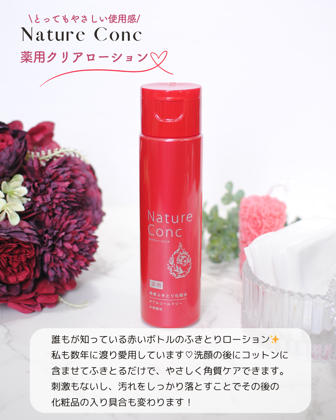☆☆☆第6期ネイチャーコンク公式アンバサダーに選んでいただきました😊∞∞ネイチャーコンク薬用クリアローション[医薬部外品]∞∞赤いボトルのこちらのローションは、1本で8役(美白*、肌あれ防止、毛穴ケア、ニキビ予防、朝の洗顔代わり、角質ケア、保...