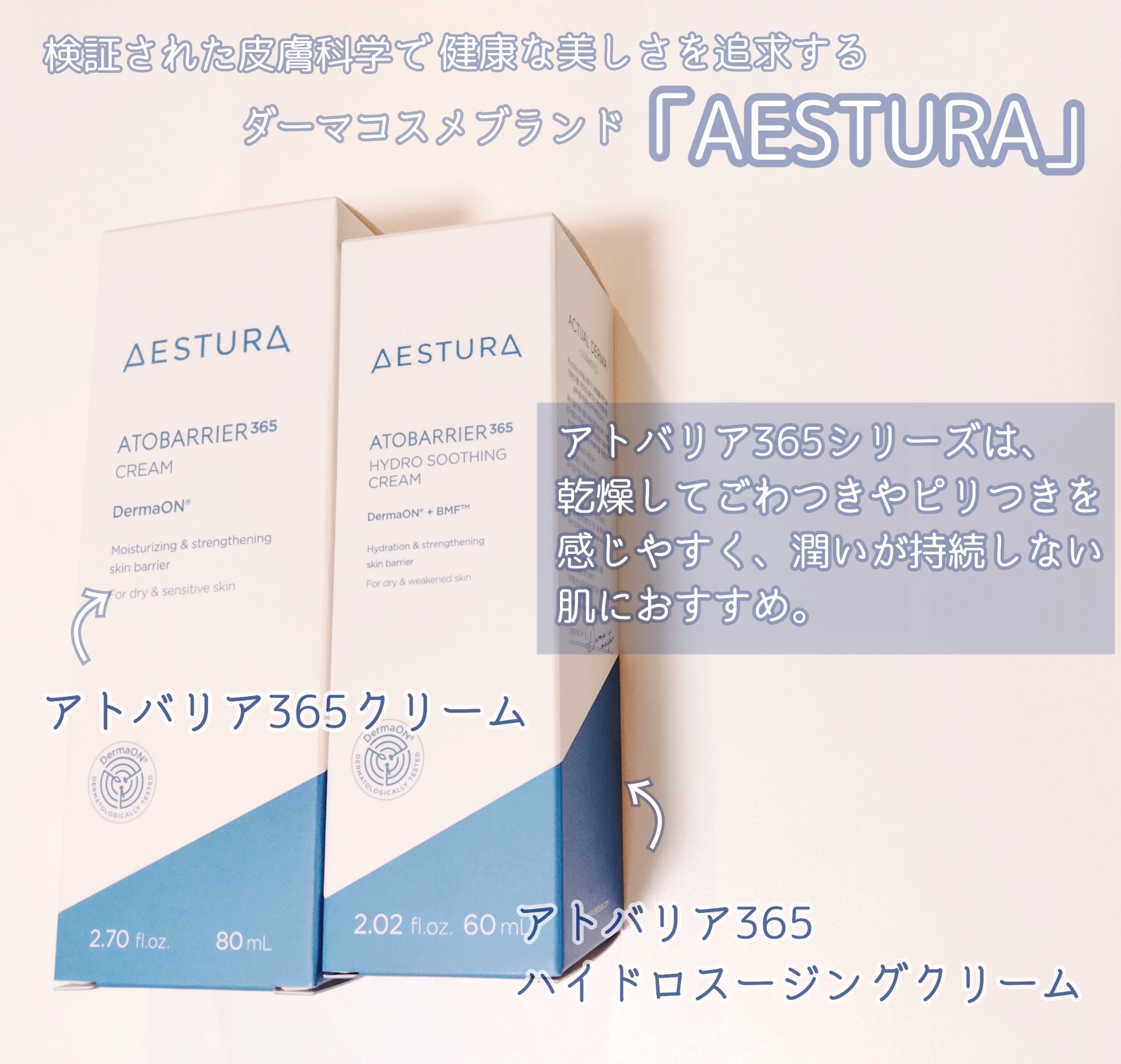 アモーレパシフィックジャパン株式会社さまより提供いただきました。AESTURAアトバリア365ハイドロクリームAESTURAは敏感肌向けのスキンケアブランド。「アトバリア365クリーム」は使ったことがありましたが、今回、水分チャージが特長の「...