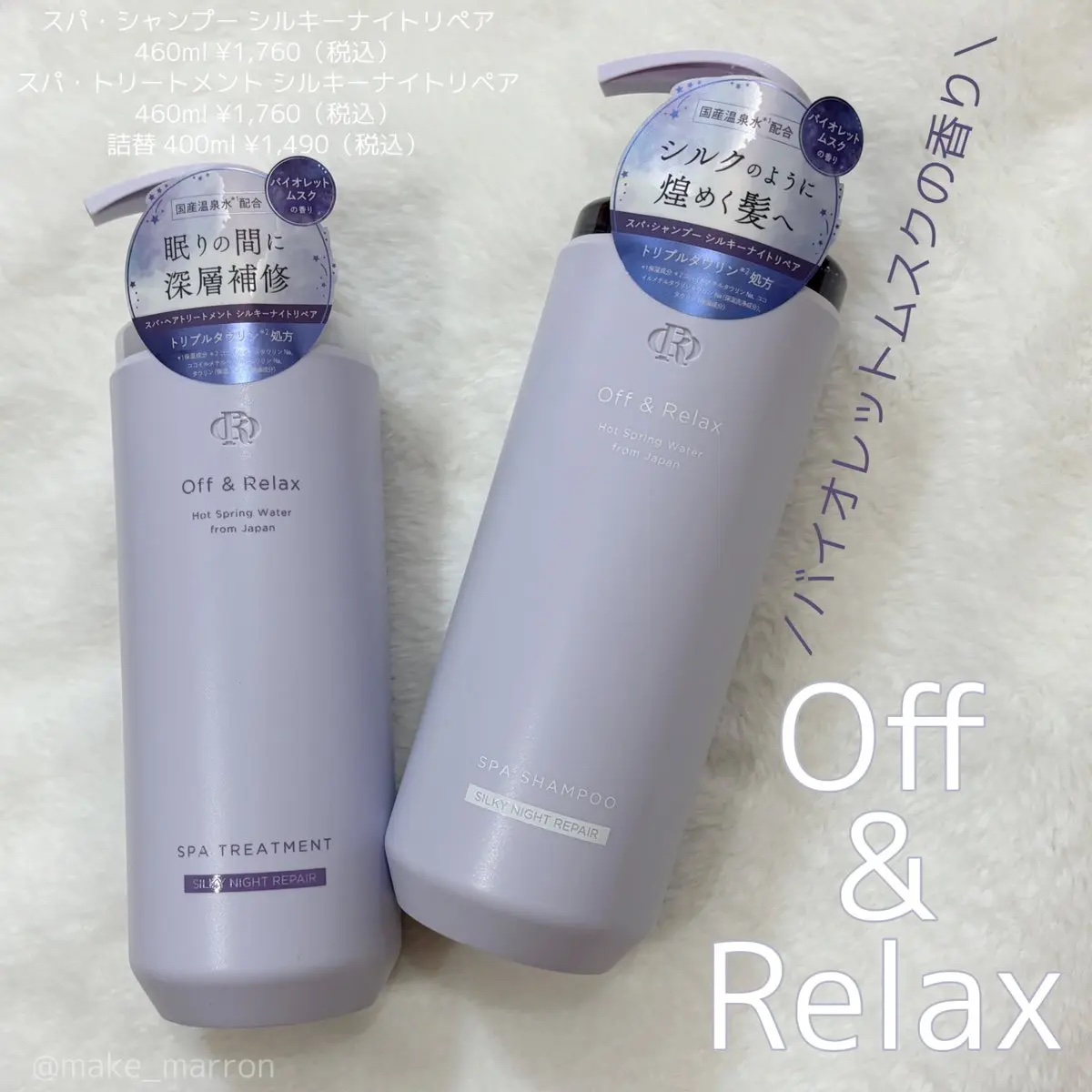 Off&Relax OR スパ・シャンプー/ヘアトリートメント シルキーナイトリペア | 1,760円 |