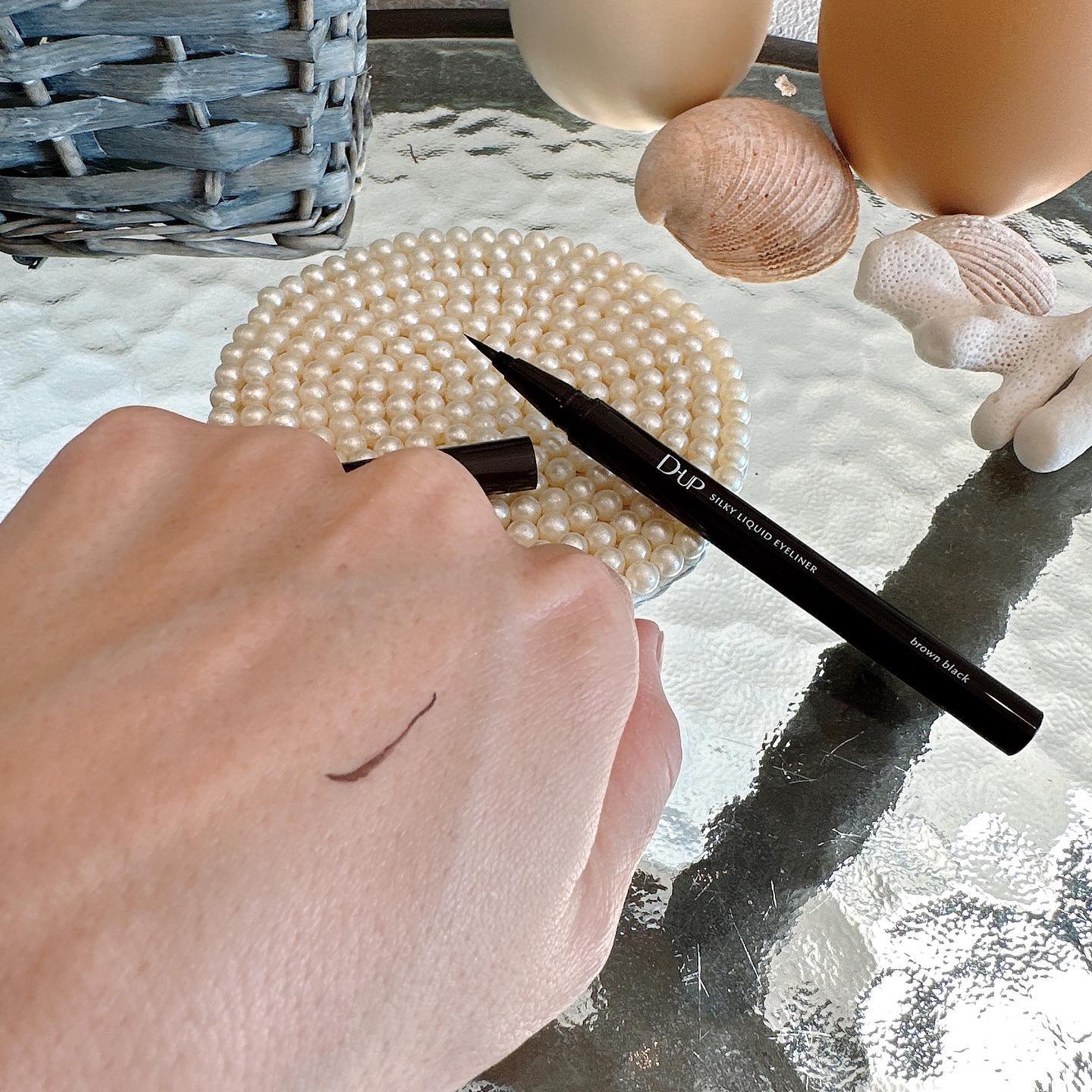 D-upのマスカラは初めて使ったんだけどこんなには良かったの🥹? 1本1本、繊細にキャッチしてダマならず塗れるキレイな仕上がり👁✨ ウォータープルーフなのにフィルムタイプの良いとこを兼ね備えてるなんて最高かよ🥹🤎 しかも神崎さんプロデュース👈🥹🤎 D-upのアイライナーは、お世話になってます☺️ 本当に描きやすくてアイライナーの細いスーッとした跳ねもしやすい👏