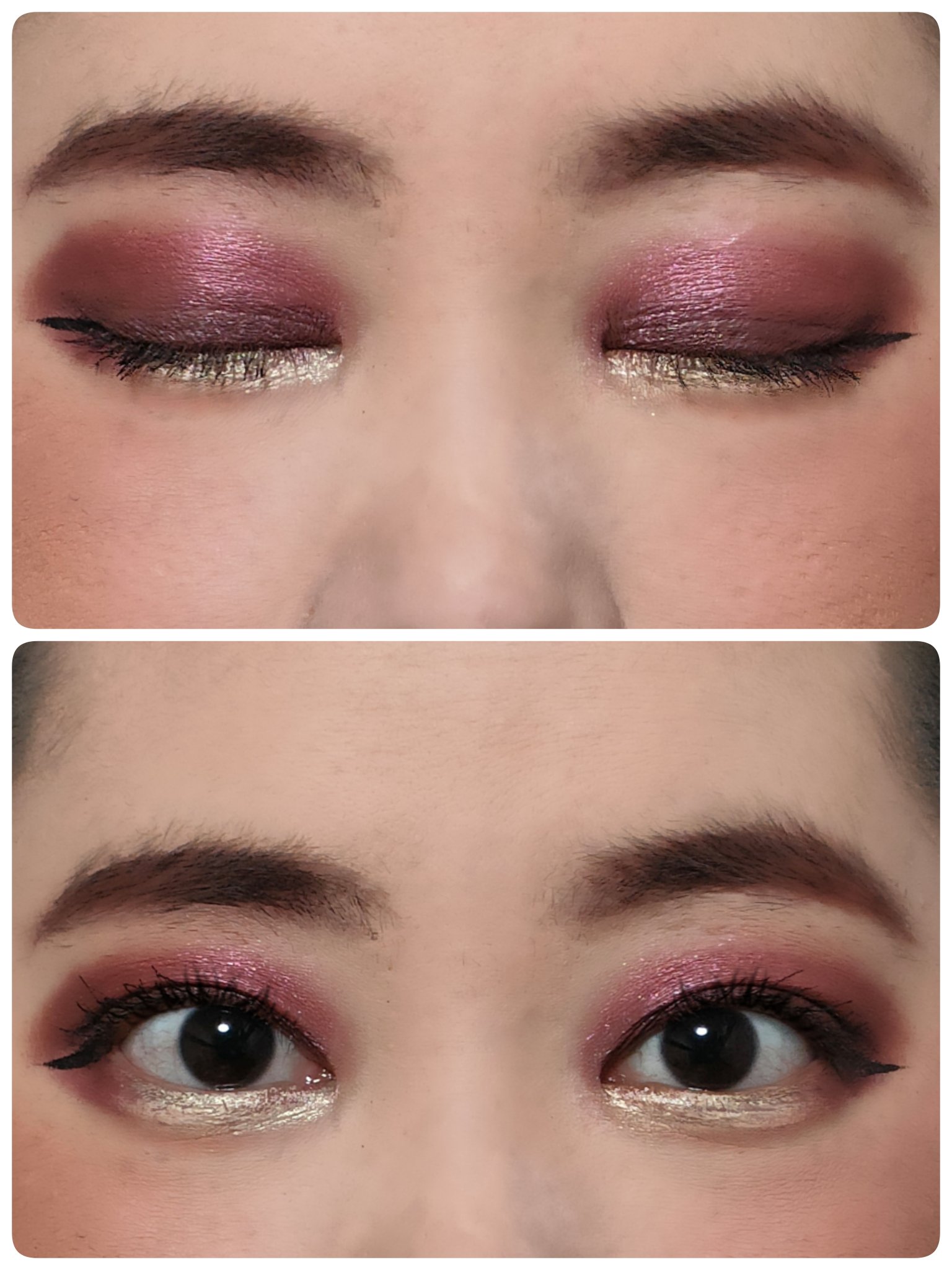 アイシャドウパレットは、URGLAM UR GLAMBLOOMING EYE COLOR PALETTE 02を、使用しました。 マスカラは、MAYBELLINE NEW YORK コロッサルボリュームエクスプレスを、まつ毛全体にまんべんなく塗ります。 リップは、wet 'n' wild MegaLast Lip Colorを、唇全体にまんべんなく塗ります。