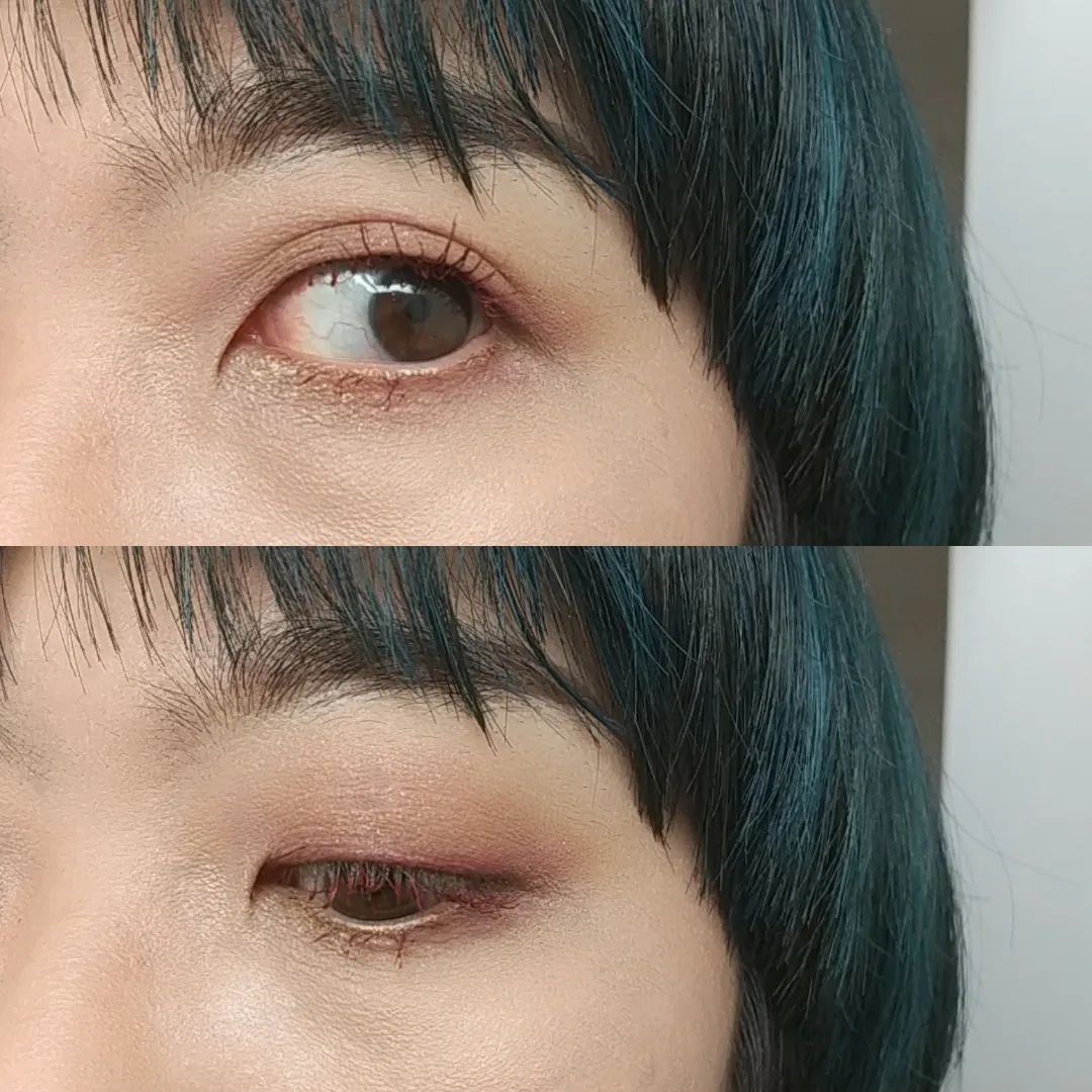 最近上下でまったく違うキラキラのせることにハマってるniniです。 このパレット全体的に発色が濃すぎて少し使いづらいんだけど、秋にはどうしても使いたくなる色ばかり。 少量でもグリーンの偏光ラメがバチバチなビーム放ちます。むしろ少量じゃないと話し相手の目が危険じゃないかと心配になる