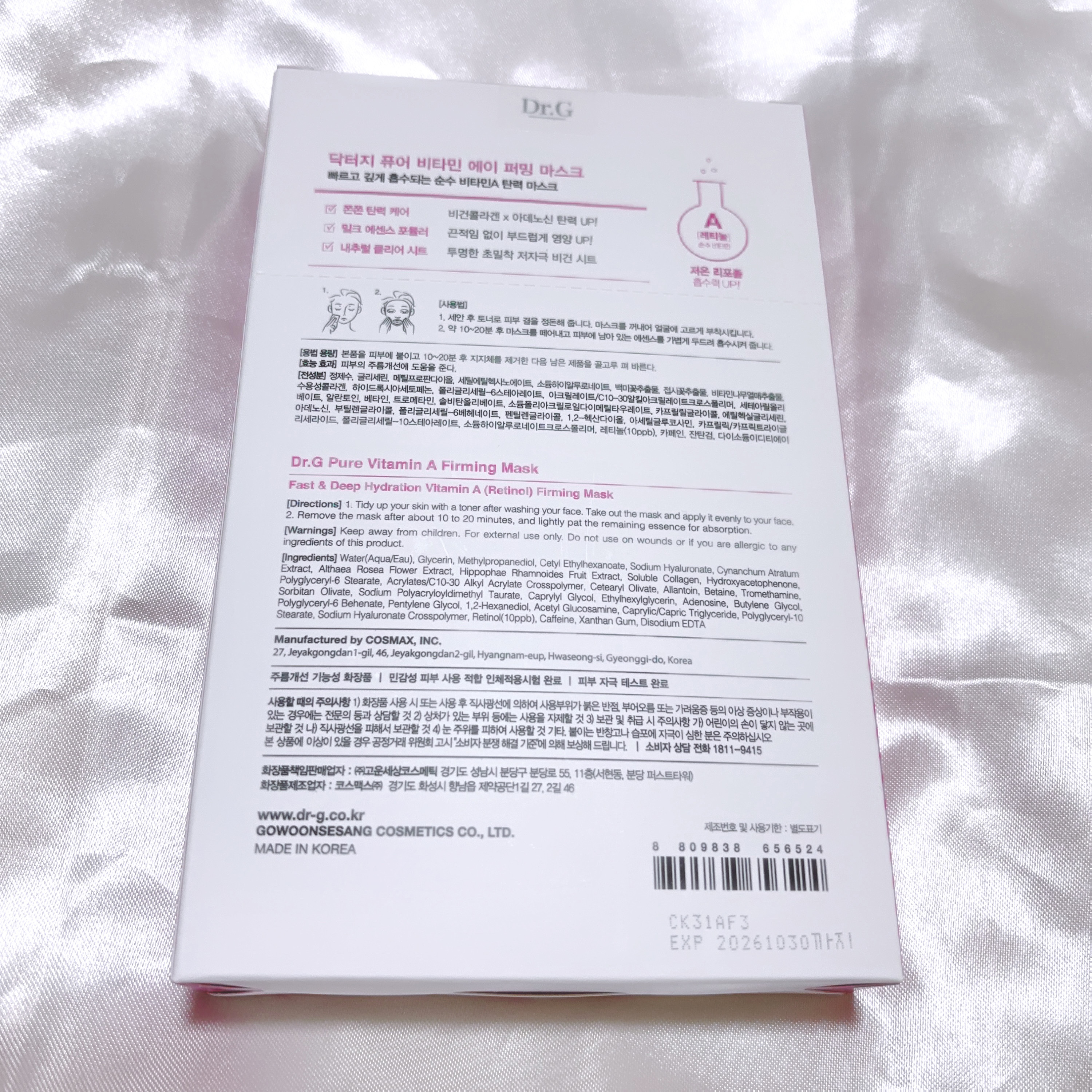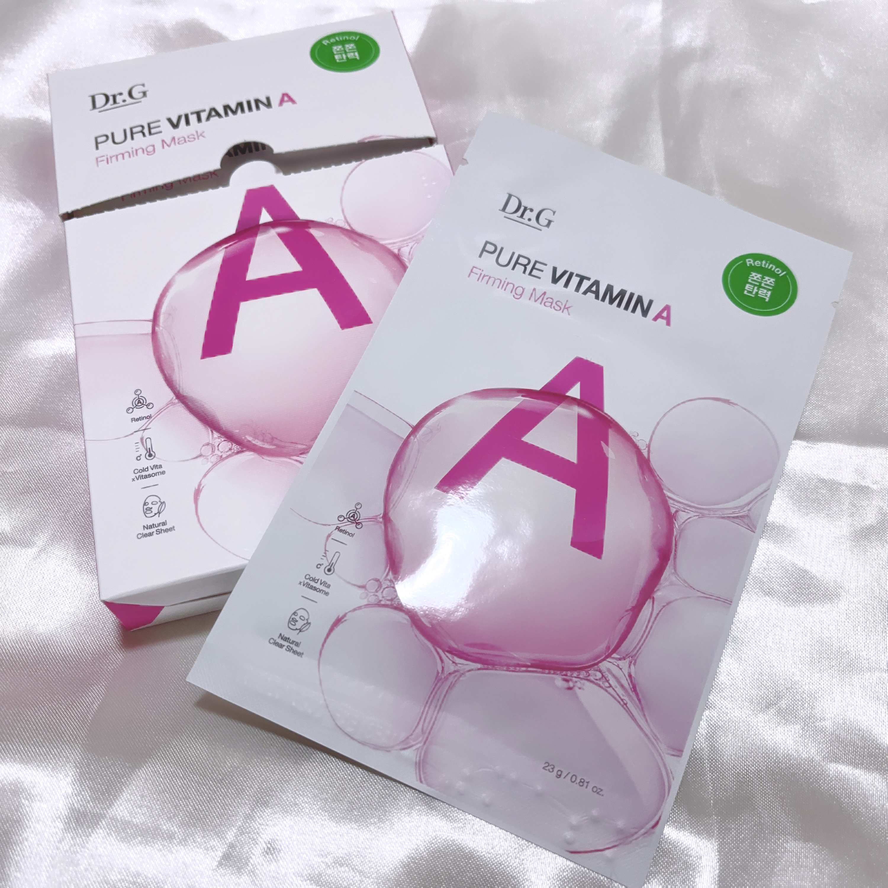 ふっくら弾力とハリを期待して💡今日のシートマスクは純ビタミンA※1とヴィーガンコラーゲン※2 アデノシン※3を配合した(1〜3すべて保湿成分)Dr.G(ドクタージー)ピュアビタミンAファーミングマスク(7枚入り)シートにヒタヒタ含まっている美...