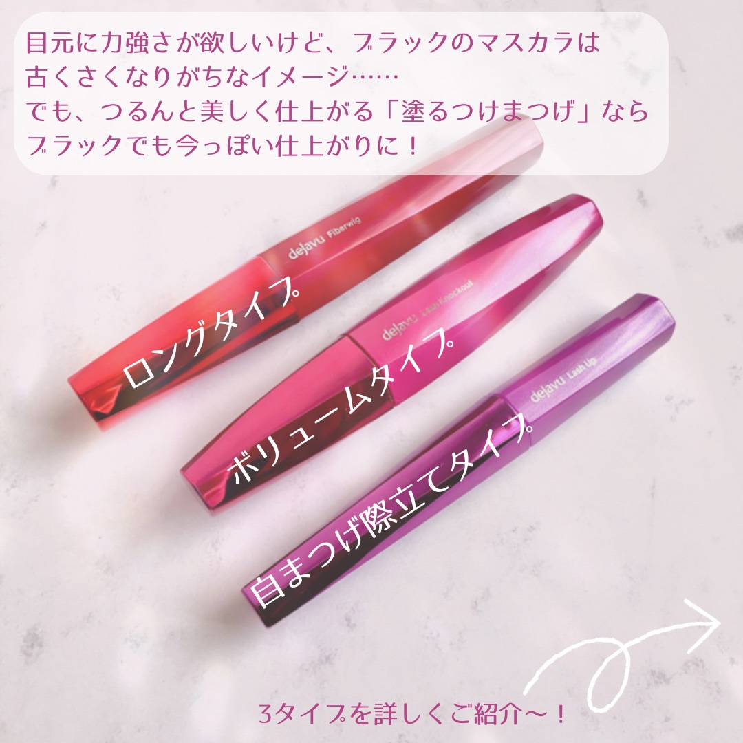 deJavu塗るつけまつげ自まつげ際立タイプ塗るつけまつげロングタイプ塗るつけまつげボリュームタイプロングもボリュームも変幻自在自まつげ際立てタイプ自まつげが自然に際立つようなナチュラルタイプまつ毛1本1本をセパレートしてくれるロングタイプ自...