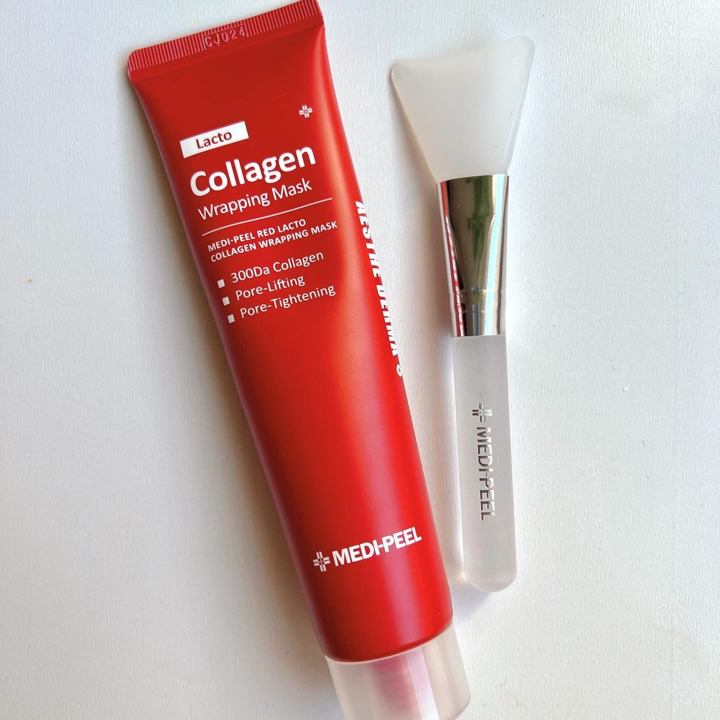 MEDIPEELレッドラクトコラーゲンラッピングマスク🐼塗るコラーゲンってめちゃめちゃ惹きあるワードよねw毛穴より小さい超低分子コラーゲンを70.2%配合🧪今流行りの塗ったら顔に密着してオーダーメイドのマスクになってくれやつ✨これ塗りやすかっ...