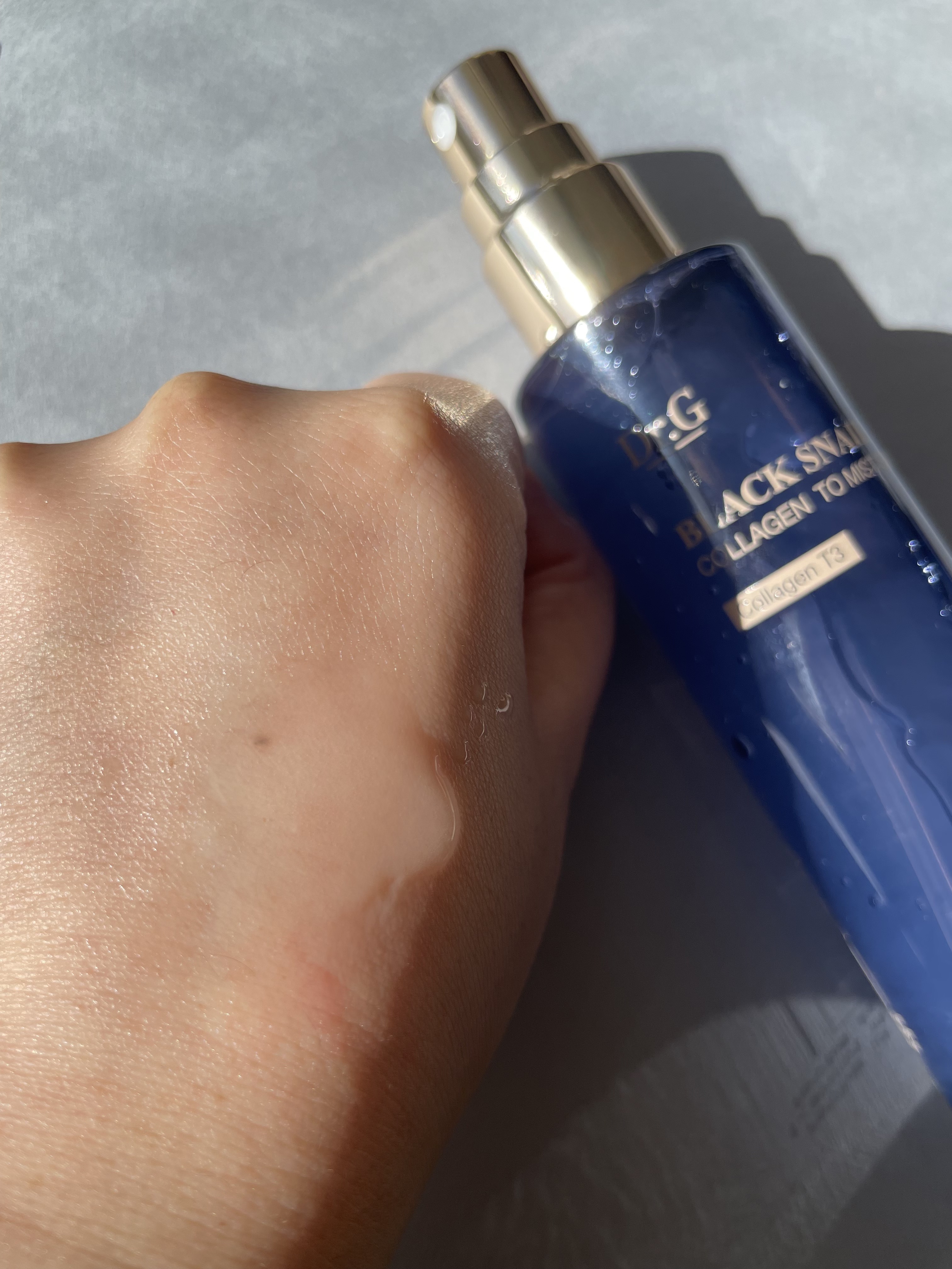 あらゆる肌悩みを一本で解決してくれるDr.Gの今大注目のミスト 日本での発売後、1週間以内に1,000個が売り切れになるほどらしい!! ブラックスネイル、コラーゲンが配合 しかもDr.G独自成分のTコラーゲンとアクティブムチンという成分も配合されていて、弾力や保湿ケアの効果はもちろんのこと、美白ケアやシワケアもできる! これ使い心地が凄く良くて、オイルじゃないからベタつかないし、トナーでもないから使ってすぐ蒸発しないのがめちゃ良い!!
