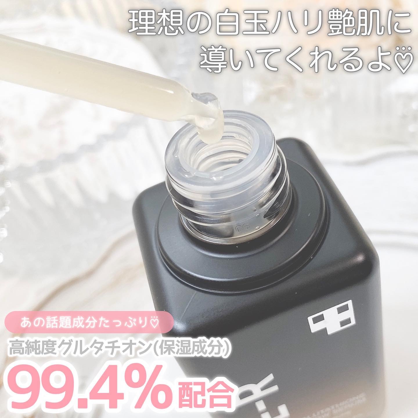 - <50ml> 水、グリセリン、PEG-8、ナイアシンアミド、BG、メチルプロパンジオール、1.2=へキサンジオール、ベタイン、グリセレスー26、ビスPEG=18メチルエーテルジメチルシラン、ラウリン酸ポリグリセリルー10、ビフィズス菌培養溶解質、メチルグルセスー20、パンテノール、スクワラン、グルコシルルチン、水添レシチン、カルボマー、トリ(カプリル酸/カプリン酸) グリセリル、トロメタミン、キサンタンガム、プロパンジオール、香料、エチルヘキシルグリセリン、グルタチオン、アデノシン、セラミドNP、フィチン酸NA、ベンジルグリコール、加水分解ムコ多糖、ヒアルロン酸NA、デキストリン、カカオエキス、Bーグルカン、シアノコバラミン、ヒアルロン酸クロスポリマーNA、トコフェロール、加水分解ヒアルロン酸、ヒアルロン酸ヒドロキシプロピルトリモニウム、水溶性コラーゲン、ヒアルロン酸、アセチルヒアルロン酸NA、ステアロイルグルタミン酸NA