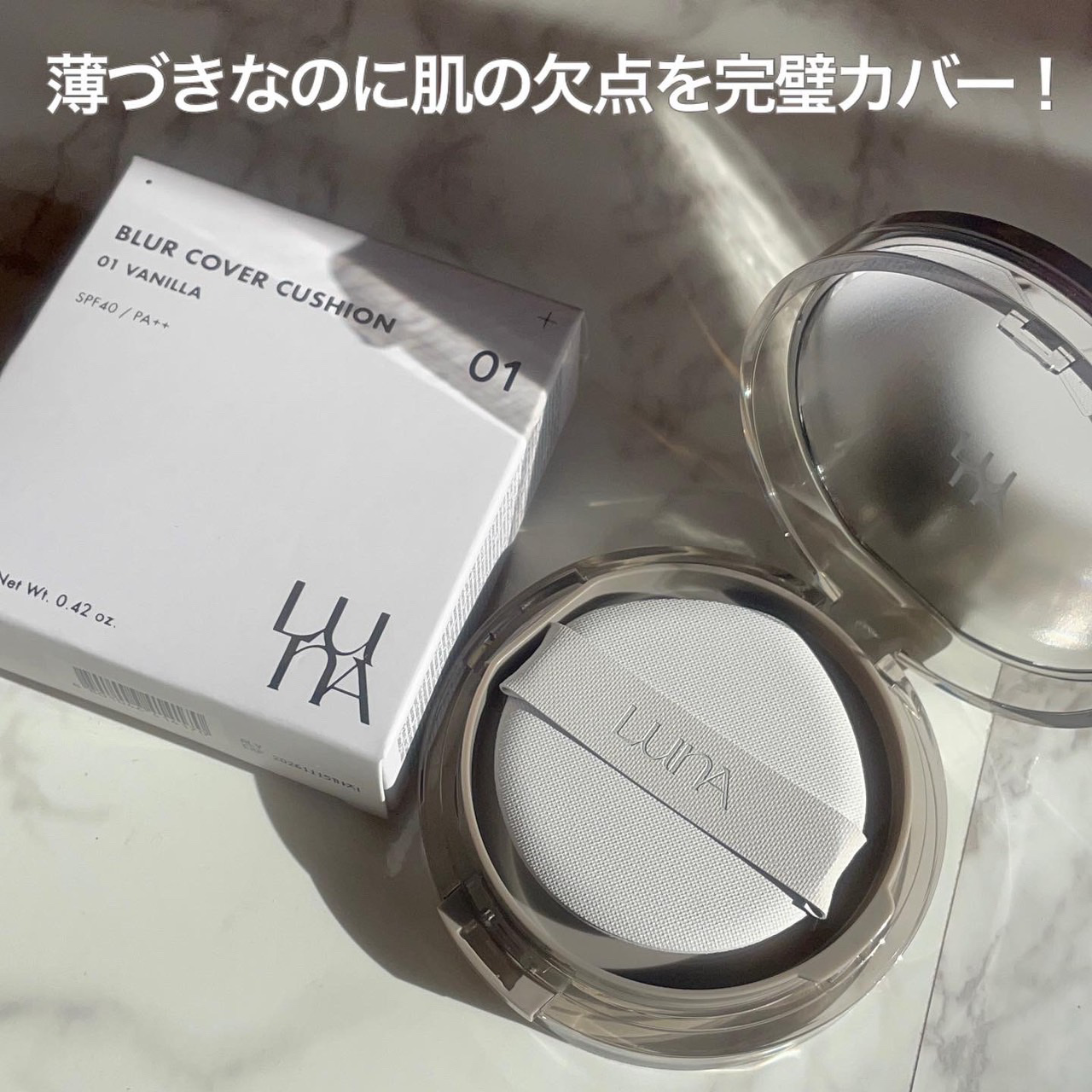 神クッションファンデ見つけた💡✼••••✼LUNAブラーカバークッション1号バニラ@luna_makeup_jp✼••••✼薄づきなのに肌の欠点を完璧カバー!ブラー加工したようにキメ細かくなめらかで、毛穴の目立たない、つるり肌へと導くブラーカ...