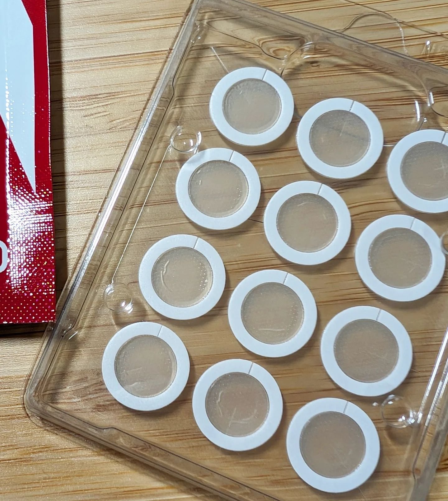 夜通し貼り付けていても剥がれないパーフェクトな密着力。ハイドロコロイド素材。 大きめのニキビがあごに出ていたのでそこに使用。パッチも結構大きめサイズなので大きいニキビにも良いと思います。 あごのニキビは2つ並んで同じくらいの大きさで出ていたのですが、1つにだけ使用。比較にぴったり。 同じニキビに数回貼り替えて使ってみましたが、残念ながら良くなることはナシ…隣にできていたニキビとも変わらず、結局2つとも同じペースで膿んでしまいました。 私のニキビが酷すぎたのか…?? 小さなニキビなら効くのかもしれません。