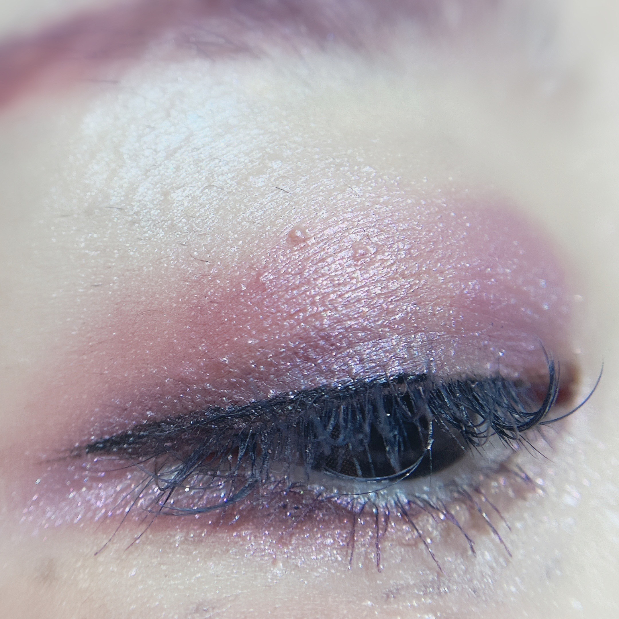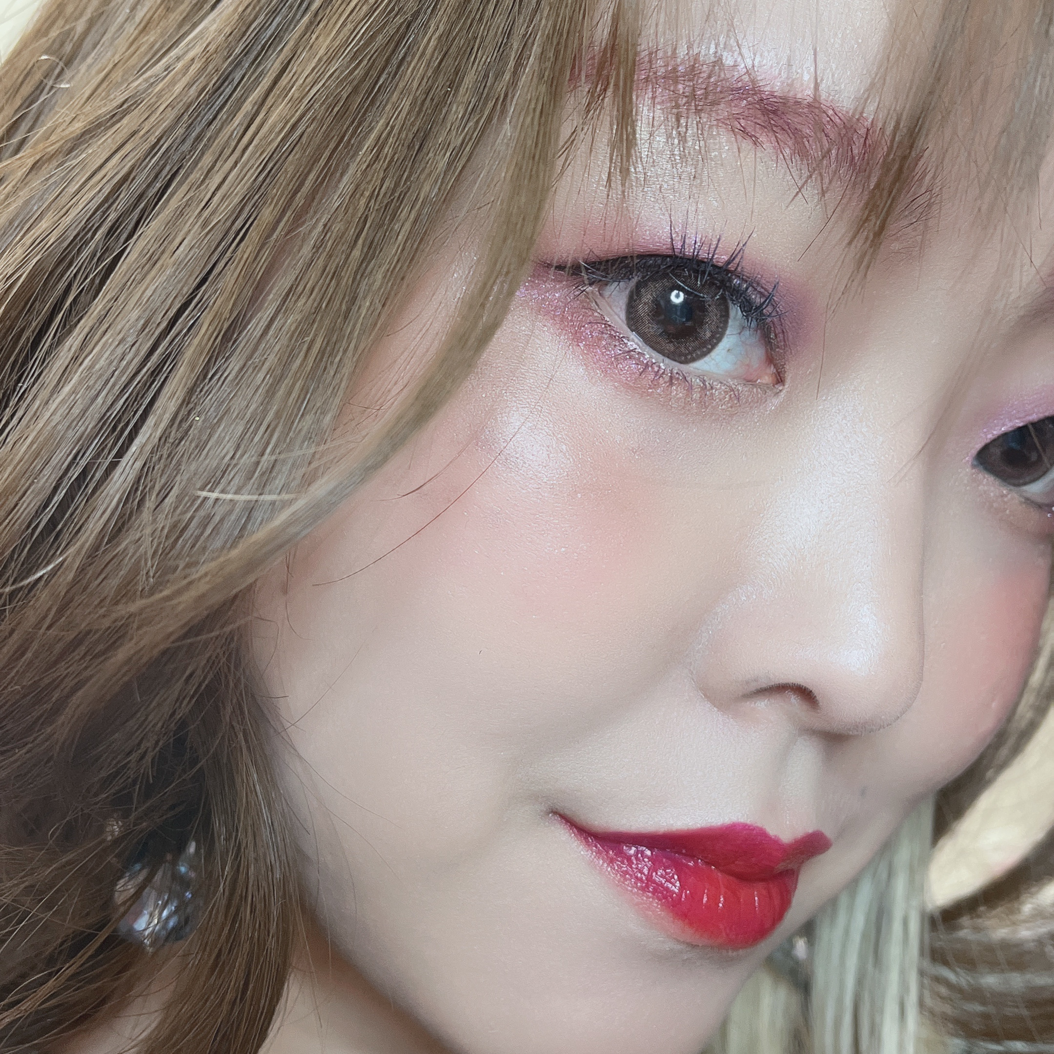 チークポップ持ってる人なら分かると思いますが、パール感は強め。 指で濃いめにつけてるので実際ブラシにとってつけるともっと薄めでモーヴカラー。 白っぽいパールなので見た目より明るめの発色。