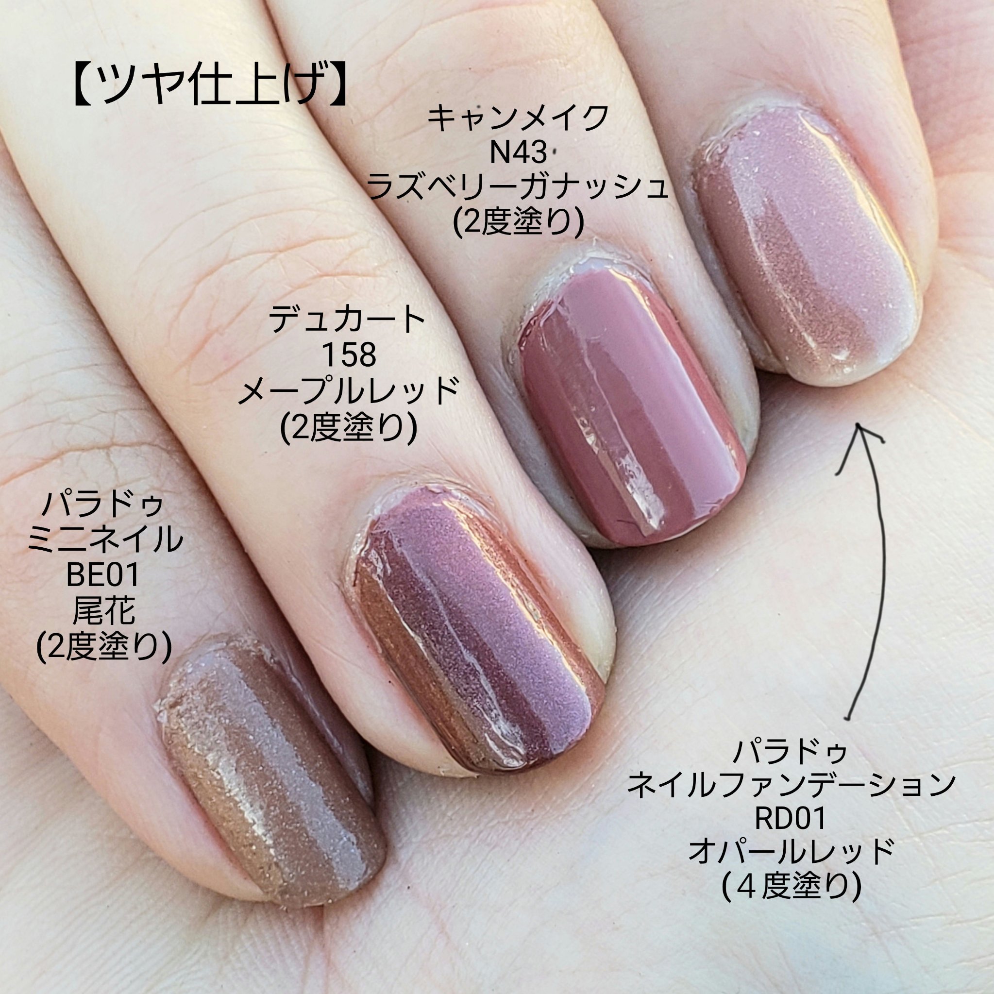 ポイントとしては、ガラスフレンチ部分は一息でやること…かな。 手順でいうと②~④だね。ベースにしたローズミルクティーが乾いたら、フレンチラインをひくところからメタルホロを貼り付けるところまでサッサッサッと💨 下準備として、メタルホロはちょうどいい大きさに切っておくと作業がスムーズ◎ それから、メタルホロを使うときは下にティッシュかキッチンペーパーを敷いておくと片付けもラク◎ 指一本ずつの作業だから、ネイルにかかる時間がかなり長くなるけど、やっぱりガラスフレンチは可愛い🖤