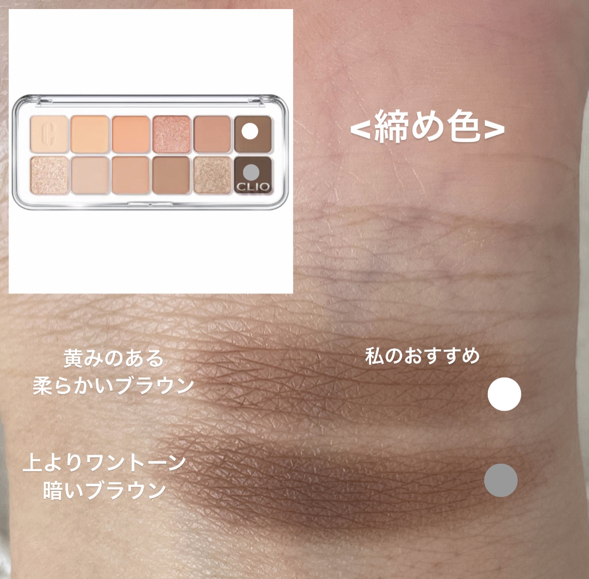 - 軽やかテクスチャーが目元に密着し、抜け感のある色使いが楽しめるデイリーパレット <101 ローズダイアリー(ROSE DIARY)> オーナメントを飾り付けたローズツリーのようにほのかに輝くウォームローズピンクカラー(イエベ秋)。 <102 ミュートアーカイブ(MUTE ARCHIVE)> 少女たちのピンキーなホームパーティームードを盛り込んだクールでヌーディーなミューテッドモブカラー(ブルべ夏ミュート)。 <103 バニラヘイズ(VANILLA HAZE)> 焼きたてのジンジャークッキーのように暖かく香ばしいウォームミュートカラー(イエベ秋ミュート)。 <104 GHR ピンク(GYEONGHOERU FLOWER FESTIVAL)> 春の日の美しく優雅な色を詰め込んだピンクカラーパレット。イエベ春&ブルベ夏におすすめのパレットです。 <105 DSG バイオレット(DEOKSUGUNG STONE WALL ROAD)> ほんのりピンクがかった柔らかなモーブカラーパレット。ブルベ夏&ブルベ冬におすすめのパレットです。 <106 DBG コーラル(GYEONGBOKGUNG STROLL)> 明るい日差しの色を取り入れたデイリーなコーラルカラー。イエベ春&ブライト秋におすすめのパレットです。