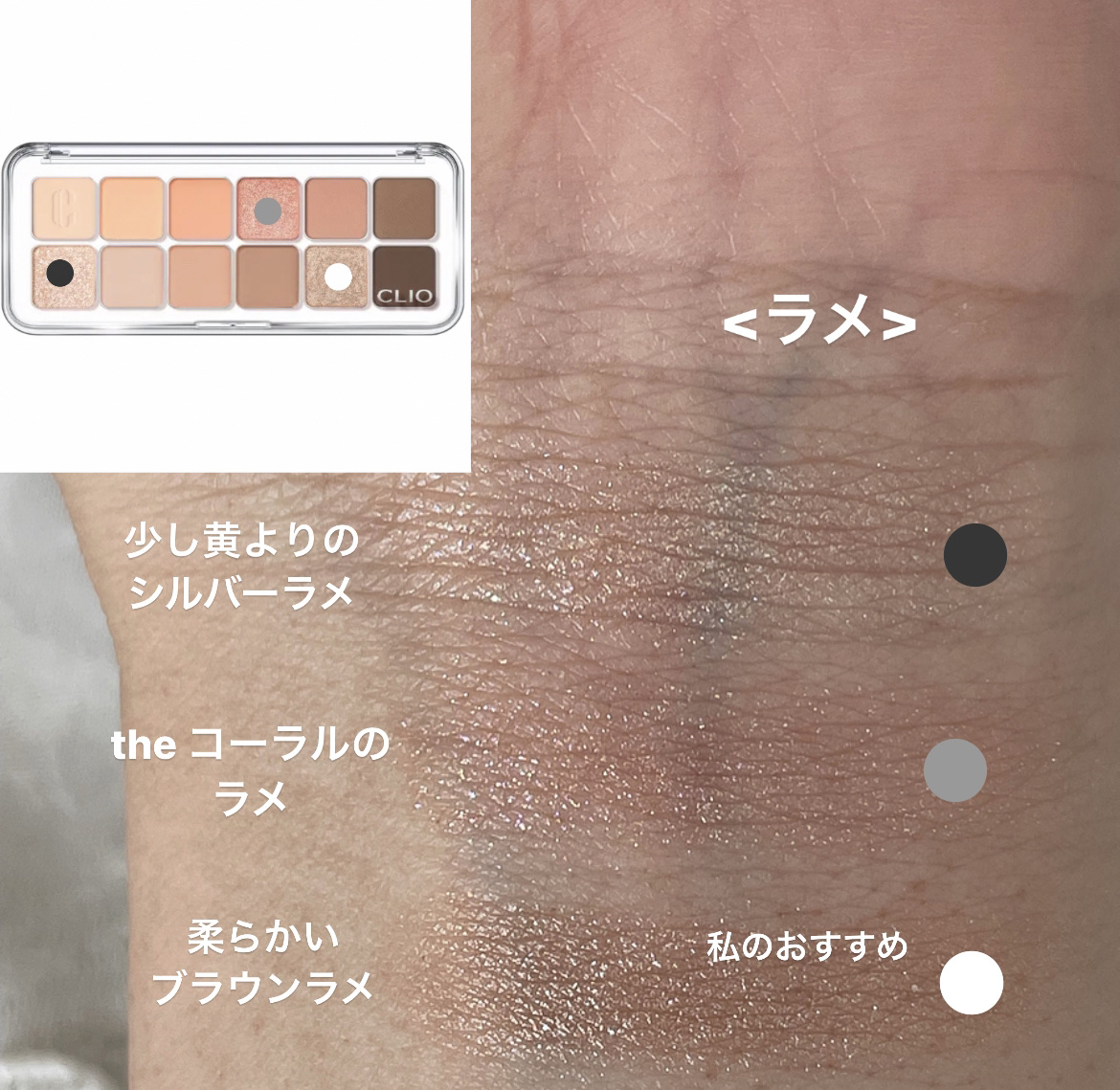ぬくもりと多幸感あふれるコーラルベージュカラー 9月のメガ割の戦利品♩ 今さらですがめちゃくちゃ可愛かったのでご紹介します! 軽やかテクスチャーが目元に密着し、抜け感のある色使いが楽しめるデイリーパレット マット、グリッター、シマー3種の質感で構成された圧巻の12色パレット。