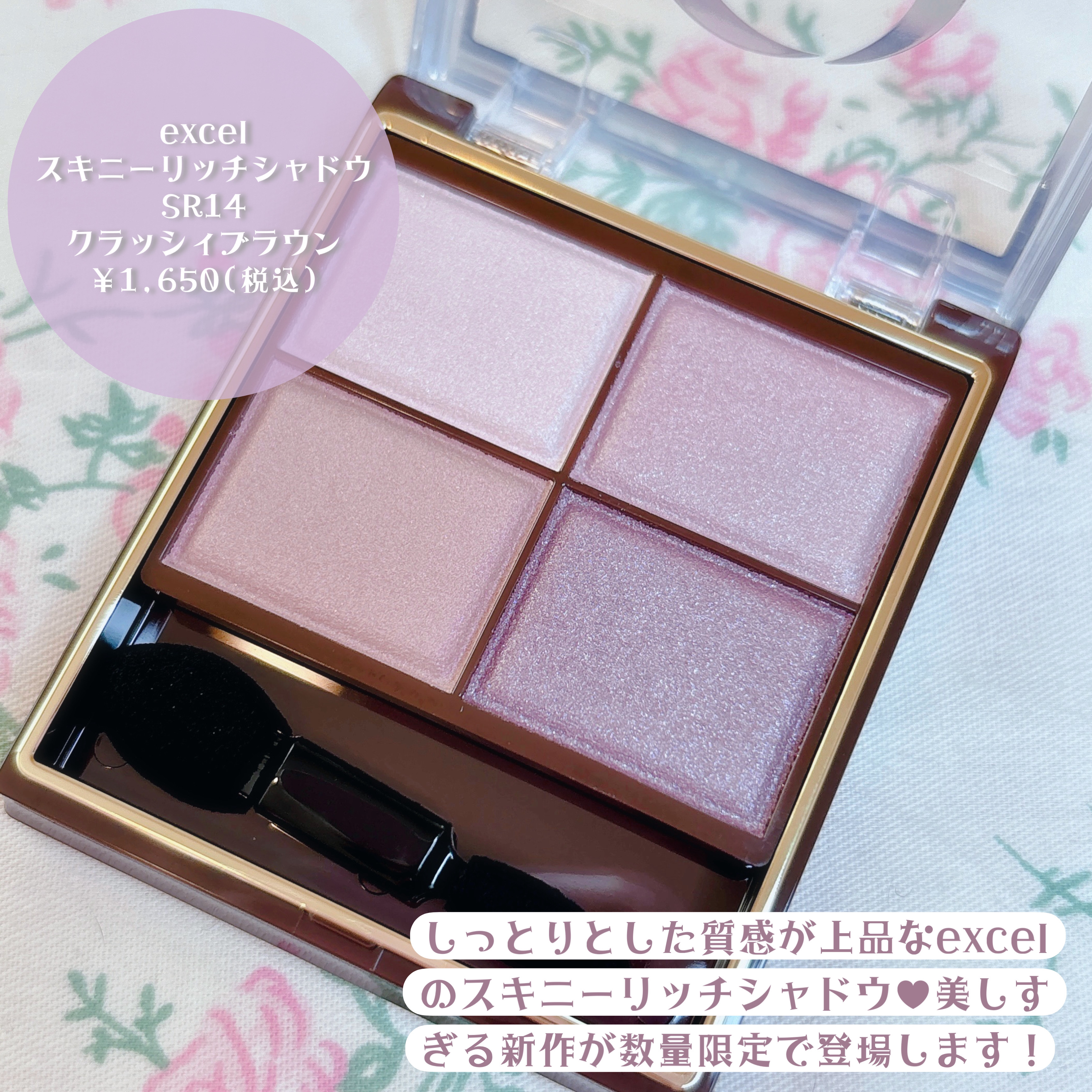 🌷excelエクセル スキニーリッチシャドウ *SR14クラッシィブラウン数量限定色*\儚げな大人ブラウン/*4色を順に重ねるだけで失敗知らずの極上グラデーション上品なツヤ感で大人の目元にまぶたに溶け込む密着感🤎SR14クラッシィブラウン数量...