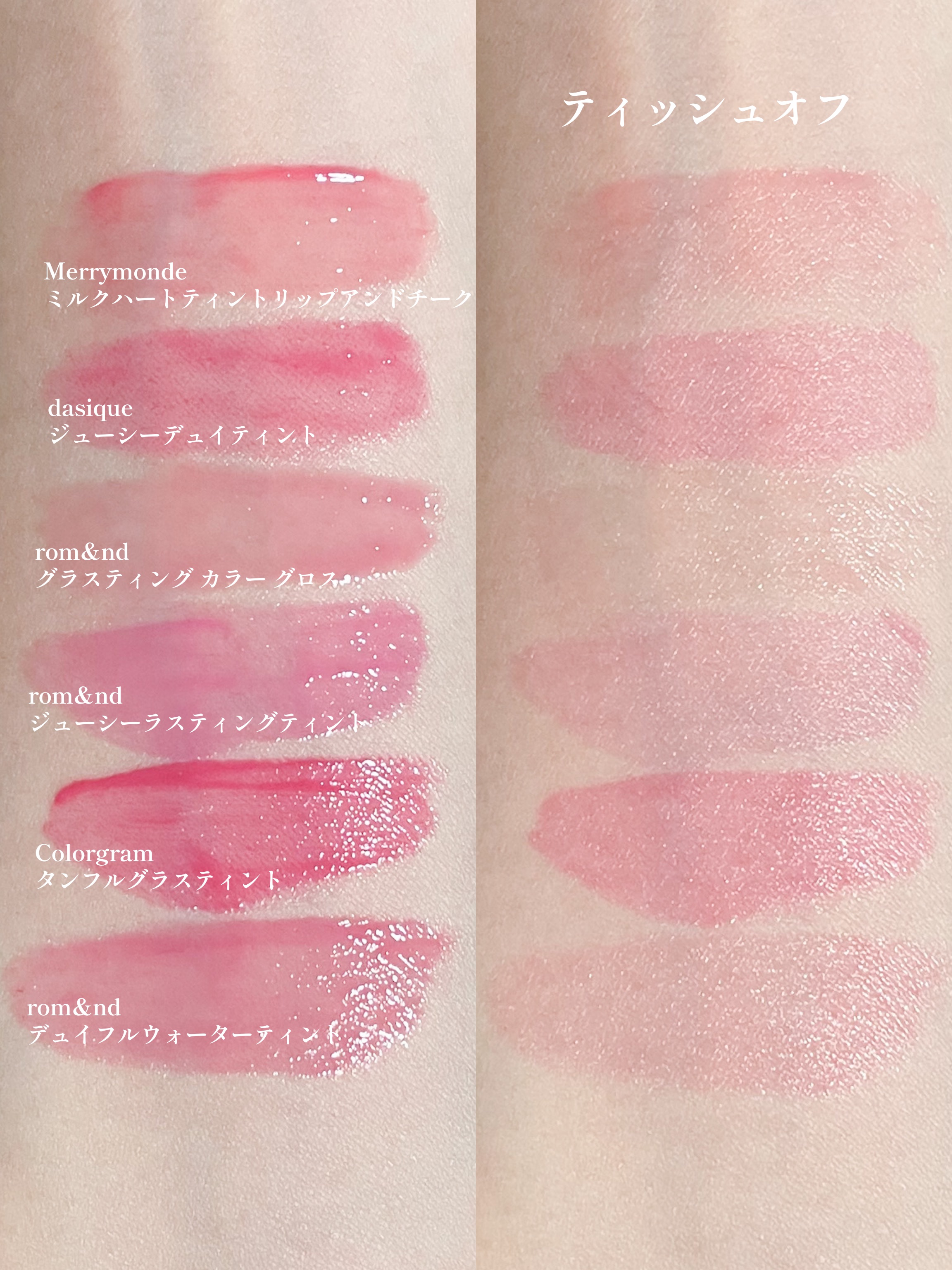 ブルベ夏おすすめカラー🎀 rom&nd ❤︎ ジューシーラスティングティント #06 FIGFIG ¥1,320(税込) デュイフルウォーターティント 06 thulian ¥1,320(税込) グラッシーボムティント BR02 ローズビーン ¥780(税込)
