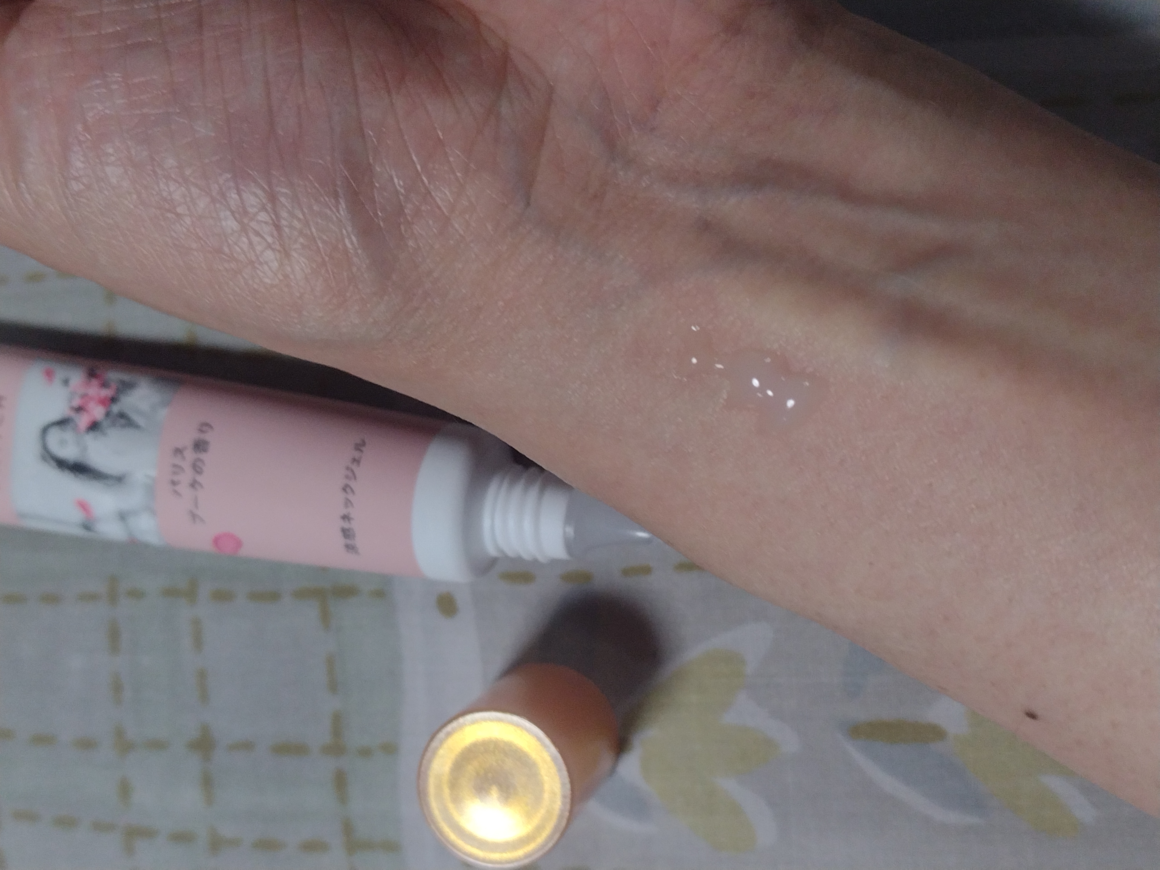 中身は、さらっとなめらかなテクスチャー。ほんのりピンクがかったベージュ系のようなカラー。のびがよく、しっとりとした使用感です。べたつきにくく、なじませやすい印象です。豆腐のなめらかなくちあたりをイメージするような使い心地でしょうか。(個人の体...