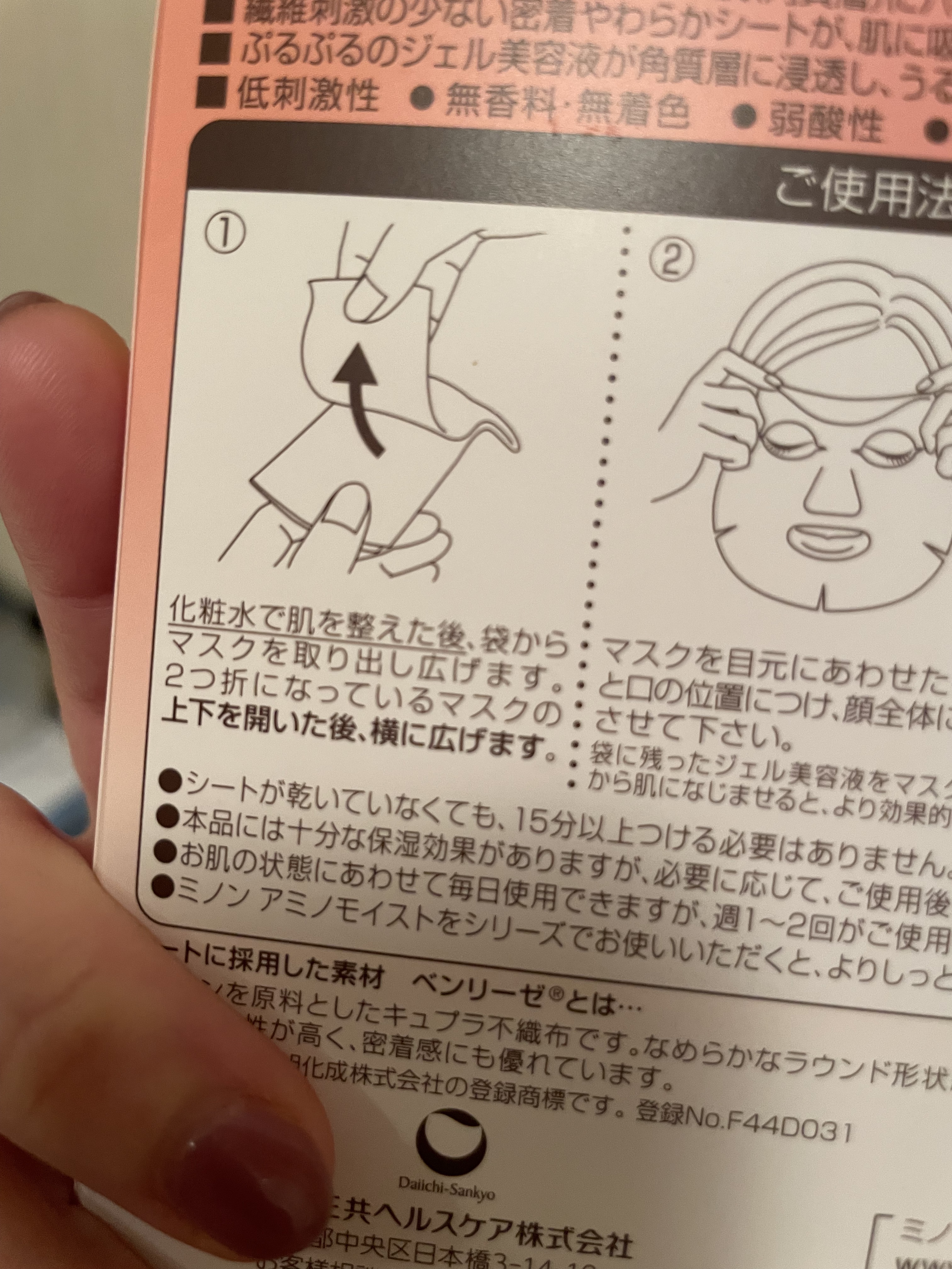 - 思わず触れたくなるほどみずみずしい肌へ。うるおって透明感。 乾燥による小ジワを目立たなくします(効能評価試験済み) 水分を保つ機能が低下しがちな角質層に、バリア機能をサポートする保湿成分を補給 ぷるぷるジェルがしみこんだ密着やわらかシートで、液ダレしません ◎ミノン アミノモイストのシートマスクは化粧水で肌を整えた後にお使いいただく「美容液マスク」です。 週に1-2回のスペシャルケアとしておすすめです♪