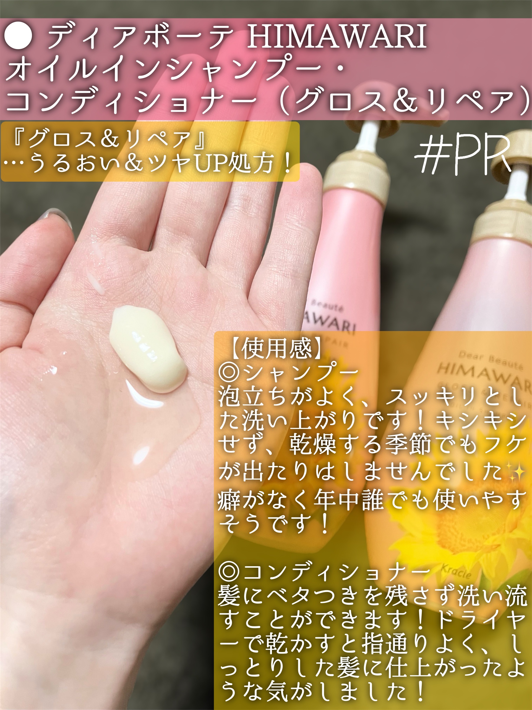 【香りが最高なシャンコン🌻】今回はシャンプーとコンディショナーのレビューです☺︎🌻ディアボーテオイルインシャンプー&コンディショナー(リッチ&リペア)🌻レビュー評価★★★★★大人気のシャンコンのお試しサイズを購入しました!シャン...