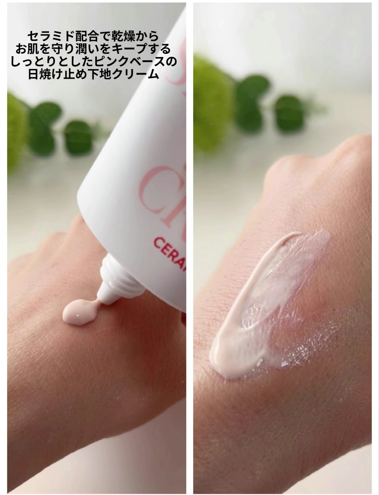 特徴 ・素肌みたいなナチュラル感 ・スキンケア、紫外線ケア、カバーができるオールインワンノンケミカルベース ・肌悩みで選べる6種 エッセンスタイプ SPF30 / PA++ ノンケミカル ♠ベージュ▸▸ ワントーン明るい肌へ、自然にカバー ♠ミント▸▸ 赤みが気になる肌に ♠ラベンダー▸▸ くすみが気になる肌に 〈クリームタイプ〉 SPF50 / PA++++ ノンケミカル ♠ベージュ▸▸ ワントーン明るい肌へ、自然にカバー ♠ピンク▸▸ 血色のないくすんだ肌に ♠イエロー▸▸ 赤みや色ムラが気になる肌に 使い心地や紫外線防御効果(SPF)をみても、これからの季節にはクリームタイプのほうが向いている気がします。