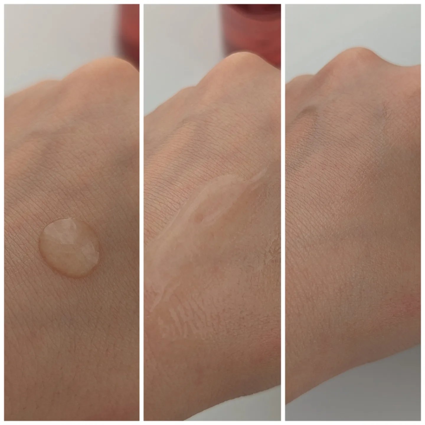 | 糸を引くくらい濃密で とろみのあるテクスチャー。 肌に膜がはったような密着感があり、 その後肌にすーっとなじんでベタつかない。 | 詳細を見る | |