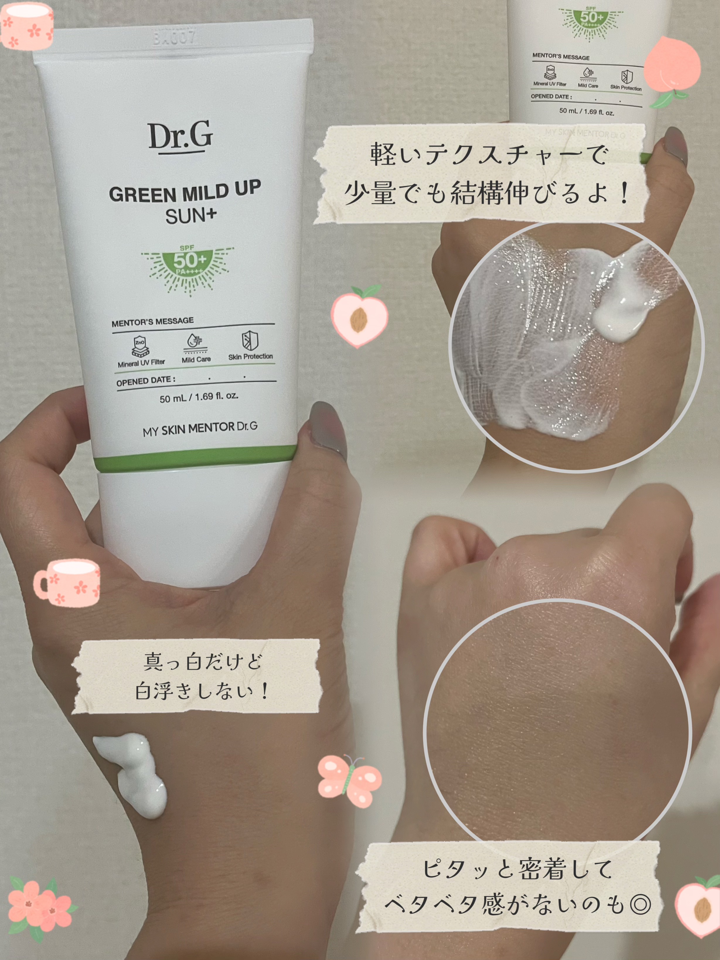 韓国では、日焼け止めといったら、ドクタージー! そんな人気の日焼け止めを紹介 無機系(紫外線散乱剤)の日焼け止めだから、肌で光を跳ね返し、紫外線が肌に吸収されないようにしてくれるんだって 化粧下地としても使用できるから、1つで2役 メイクの崩れも気にならなかったよー