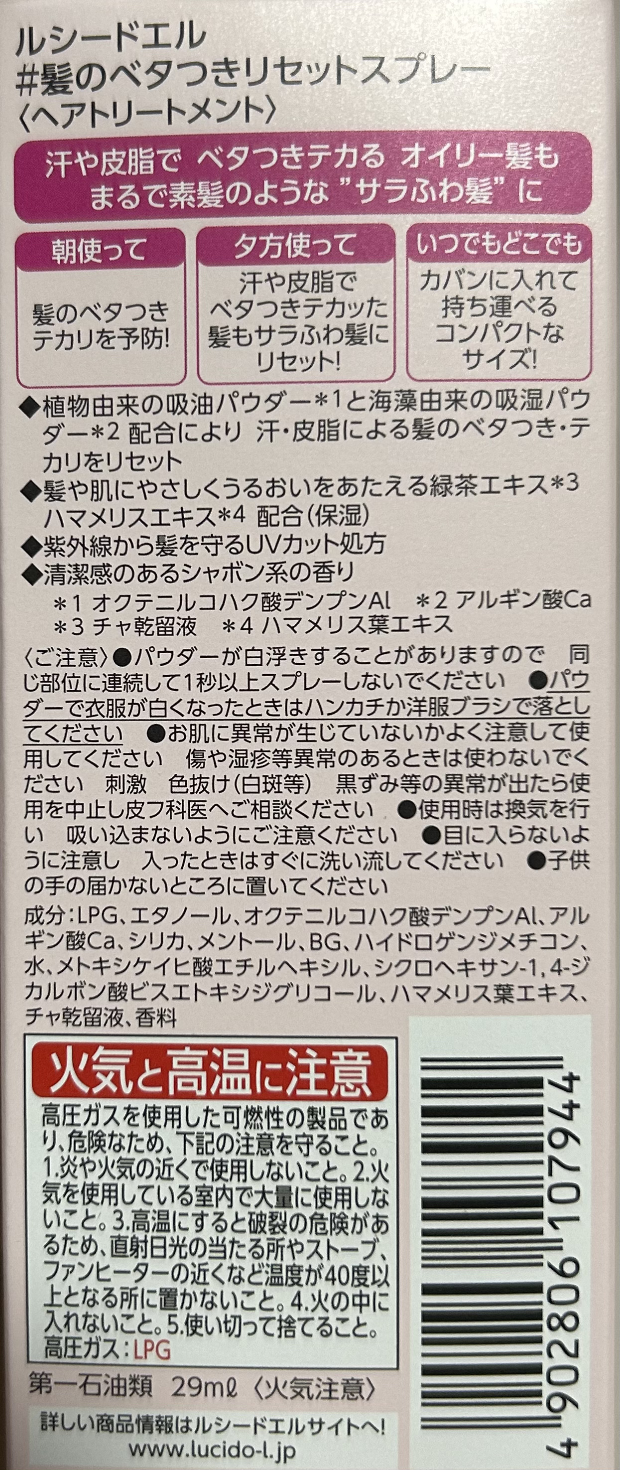 商品詳細情報ルシードエル #髪のベタつきリセットスプレー