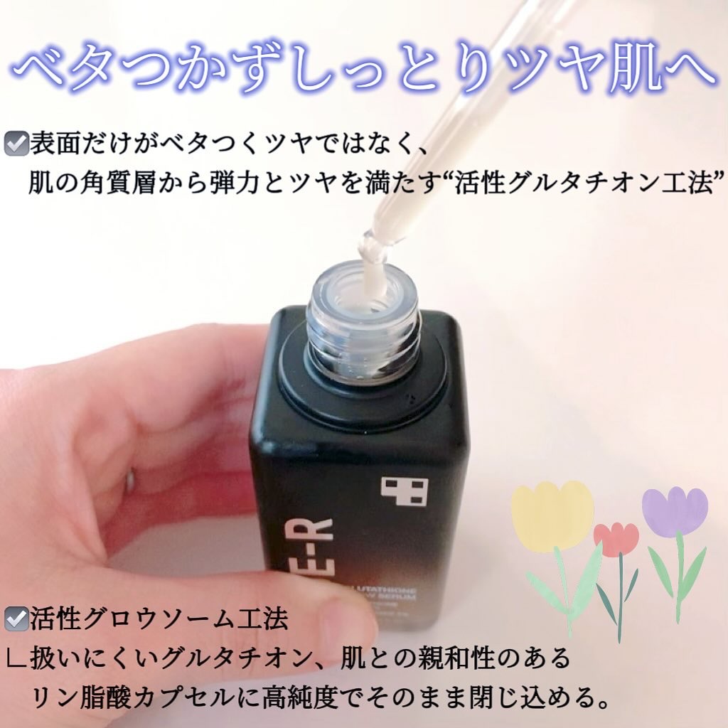 - 高純度99.4%のグルタチオン*を配合し、ハリツヤ肌に導く美容液です。 肌に馴染みやすいリン脂質製のカプセルにグルタチオン成分*を閉じ込め、肌の角質層までうるおいで満たします。 ☑グルタチオンソーム*:50,000ppm ☑ナイアシンアミド* 5%配合 ☑べたつかずしっとりツヤ肌 ☑美顔器AGE-R スキンブースターショットと一緒に使えます 化粧水などでお肌を整えたあと、適量を取り、お肌のキメに沿ってまんべんなく塗った後、やさしくなじませます。 *保湿成分 ■お肌に異常が生じていないかよく注意してご使用ください。化粧品がお肌に合わないとき即ち次のような場合には、使用を中止してください。そのまま使 用を続けますと、症状を悪化させることがありますので、皮膚科専門医等にご相談されることをおすすめします。また、傷やはれもの、しっしん等の異常が ある部位には、ご使用にならないでください。 (1)使用中、赤味、はれ、かゆみ、刺激、色抜け(白斑等)や黒ずみ等の異常があらわれた場合 (2)使用したお肌に、直射日光があたって上記のような異常があらわれた場合 ■目に入らないようご注意ください。目に入ったときは、こすらずにすぐに洗い流してください。その後、目に異物感など異常が残る場合は、眼科専門医へ ご相談されることをおすすめします。 ■極端に高温又は低温の場所、直射日光のあたる場所には保管しないでください。 ■開封後なるべく早めに使用してください。 ■ご使用後はフタをきちんと閉めてください。 ■乳児、子供の手の届かない所に保管してください。