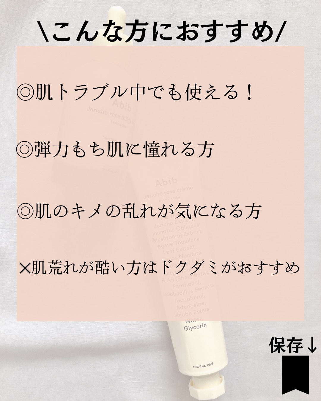 Abib復活草シリーズ🌱大好きな復活草シリーズをいただきました!•復活草PHAトナースキンブースター肌のキメ整える•保湿ケア濃密なとろみのあるテクスチャーしっとりとした塗り心地で乾燥肌や秋冬にぴったりな使い心地•復活草ビフィダセラムファーミン...