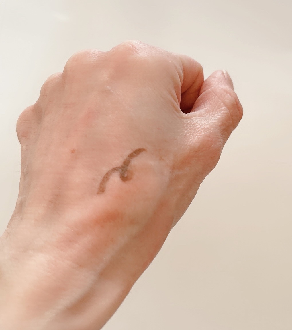 極細0.1㎜の筆先 特殊ポリマー配合で、速乾性があり、こすれに強く、にじみにくい 筆先が極細なので細いラインも綺麗に描けました かすれることもなく滑らかな描き心地 シフォンブラウンはナチュラルメイクにぴったり おしゃれな感じだけど自己主張し過ぎず、さりげなさがあって