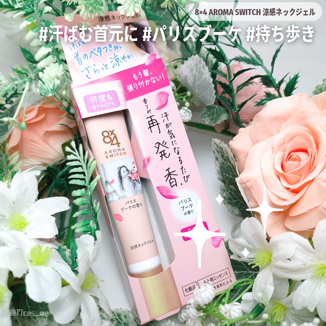 ✴︎8x4 アロマスイッチ 涼感ネックジェル パリスブーケの香りだんだんと暖かくなってきて汗をかくことが増えてきた😭首にぺたっと髪の毛がはりつくとストレス😇そんな悩みにアプローチしてくれるアイテムが8x4から誕生🐣この涼感ネックジェルは塗ると...