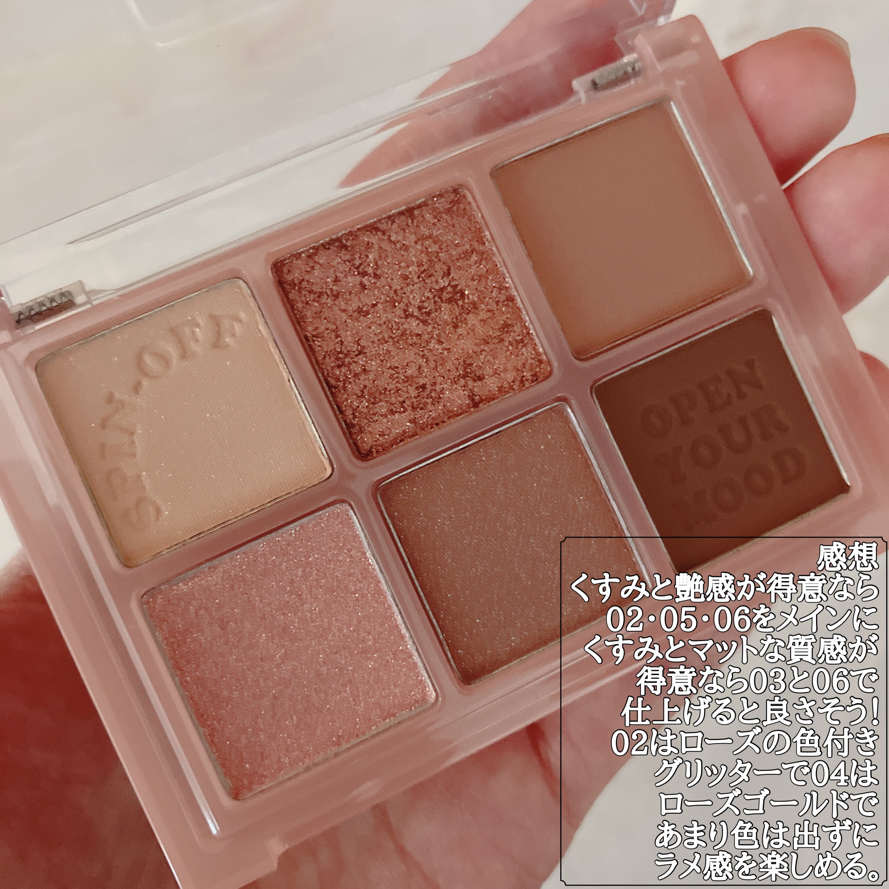ブルベの方は透明感が大爆発🔥しますので ご注意下さい👷🏻♀️⚠️笑 目元のくすみが取れてつやつや瞼になりますし ラメが2種類あるので調整がしやすく 2種類とも大きすぎず小さすぎない 丁度いい大きさなので安っぽさがなく 瞼と一体化してくれます。 色はほとんど付かないので どんなアイシャドウにも合います。 買って肌の色に合わなかった アイシャドウでも この色を最後に塗るだけで馴染みますし ひとつ持っているだけで活躍します。 キラキラを敬遠している方こそ 試してみてほしいです。