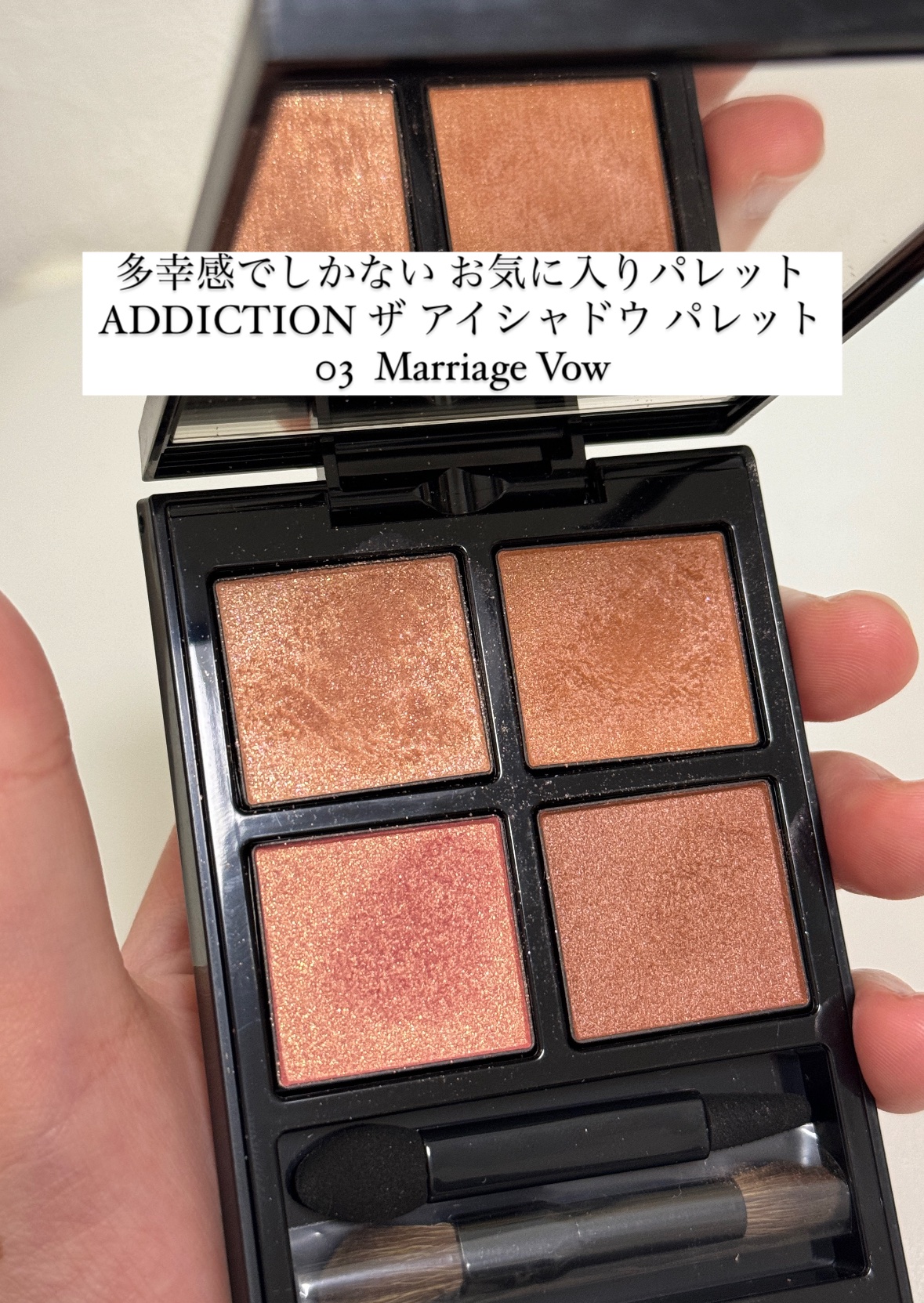 ADDICTIONアディクション ザアイシャドウパレット003MarriageVow久しぶりに使ったけどやっぱり可愛い🩷このパレットリニューアルして今は全く同じ色じゃないと思うけど似たような感じの色はあった!名前が同じMarriageVowだ...