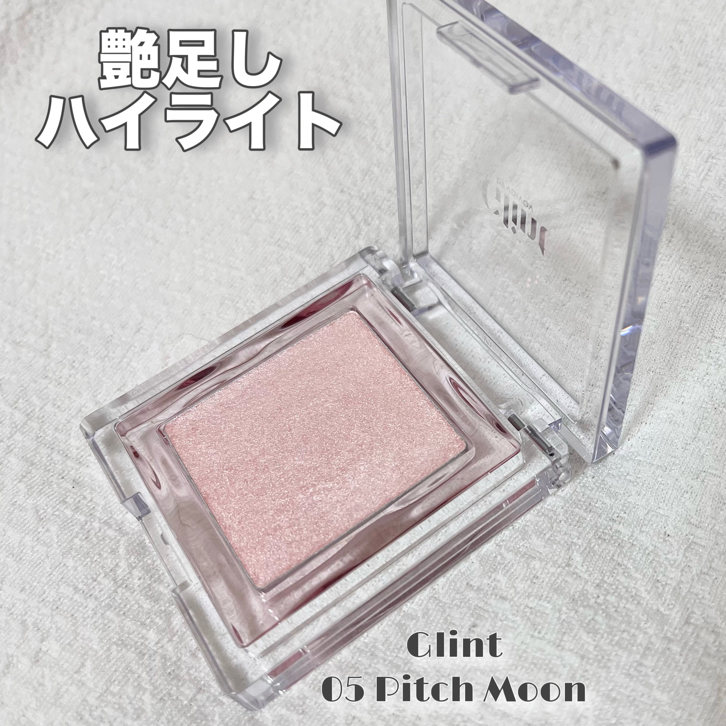 韓国ハイライト界でも人気なGlint💖 2つのカラーを試して比較してみました✨️ 05ピッチムーンはピンクベージュのようなカラーでハイライトの粒子がとても細かい! どちらも共通してキラキラと輝いてくれるのが本当に可愛いです⭐️ 一軍コスメの仲間入りです🌸