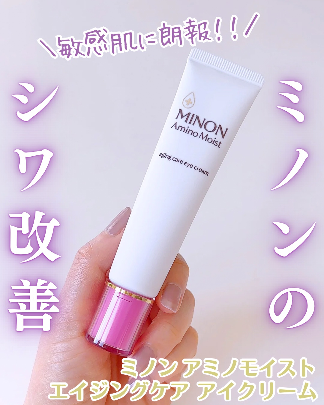 - 【敏感肌も使える薬用シワ改善アイクリーム】 ダブルの有効成分配合。気になるシワを改善し、しみ・そばかす*1、肌あれを防ぎます。 ●ナイアシンアミド:シワ改善&しみ予防 ●グリチルリチン酸2K:肌あれ予防 ハリを与えつや肌に導く「ハリシェイプペプチドWR*2」配合。 使い続けるたび、シワを改善し、うるおってハリのある明るい印象の目元へ。 エイジングケア:年齢に応じたお手入れケア *1メラニンの生成を抑え、しみ・そばかすを防ぐ *2ヤシ油脂肪酸水解コラーゲンK (販売名:ミノンアミノモイストAE)【医薬部外品】