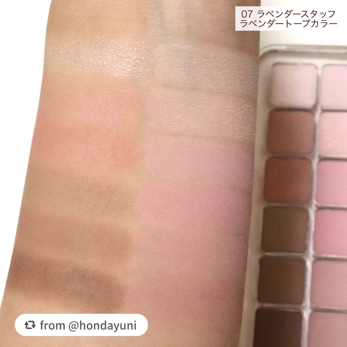 - 軽やかテクスチャーが目元に密着し、抜け感のある色使いが楽しめるデイリーパレット <101 ローズダイアリー(ROSE DIARY)> オーナメントを飾り付けたローズツリーのようにほのかに輝くウォームローズピンクカラー(イエベ秋)。 <102 ミュートアーカイブ(MUTE ARCHIVE)> 少女たちのピンキーなホームパーティームードを盛り込んだクールでヌーディーなミューテッドモブカラー(ブルべ夏ミュート)。 <103 バニラヘイズ(VANILLA HAZE)> 焼きたてのジンジャークッキーのように暖かく香ばしいウォームミュートカラー(イエベ秋ミュート)。 <104 GHR ピンク(GYEONGHOERU FLOWER FESTIVAL)> 春の日の美しく優雅な色を詰め込んだピンクカラーパレット。イエベ春&ブルベ夏におすすめのパレットです。 <105 DSG バイオレット(DEOKSUGUNG STONE WALL ROAD)> ほんのりピンクがかった柔らかなモーブカラーパレット。ブルベ夏&ブルベ冬におすすめのパレットです。 <106 DBG コーラル(GYEONGBOKGUNG STROLL)> 明るい日差しの色を取り入れたデイリーなコーラルカラー。イエベ春&ブライト秋におすすめのパレットです。
