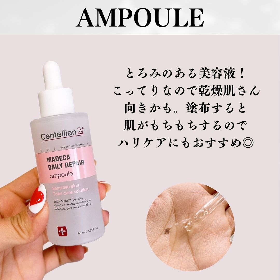 黄砂や花粉、季節の変わり目のこの時期におすすめしたいアイテム🍃✅Centellian24マデカデイリーリペアアンプル洗顔後に導入化粧水のように使用する透明でさらさらな美容液🫠外部刺激によって敏感になった肌をケアしてくれる東国製薬様の独自成分T...