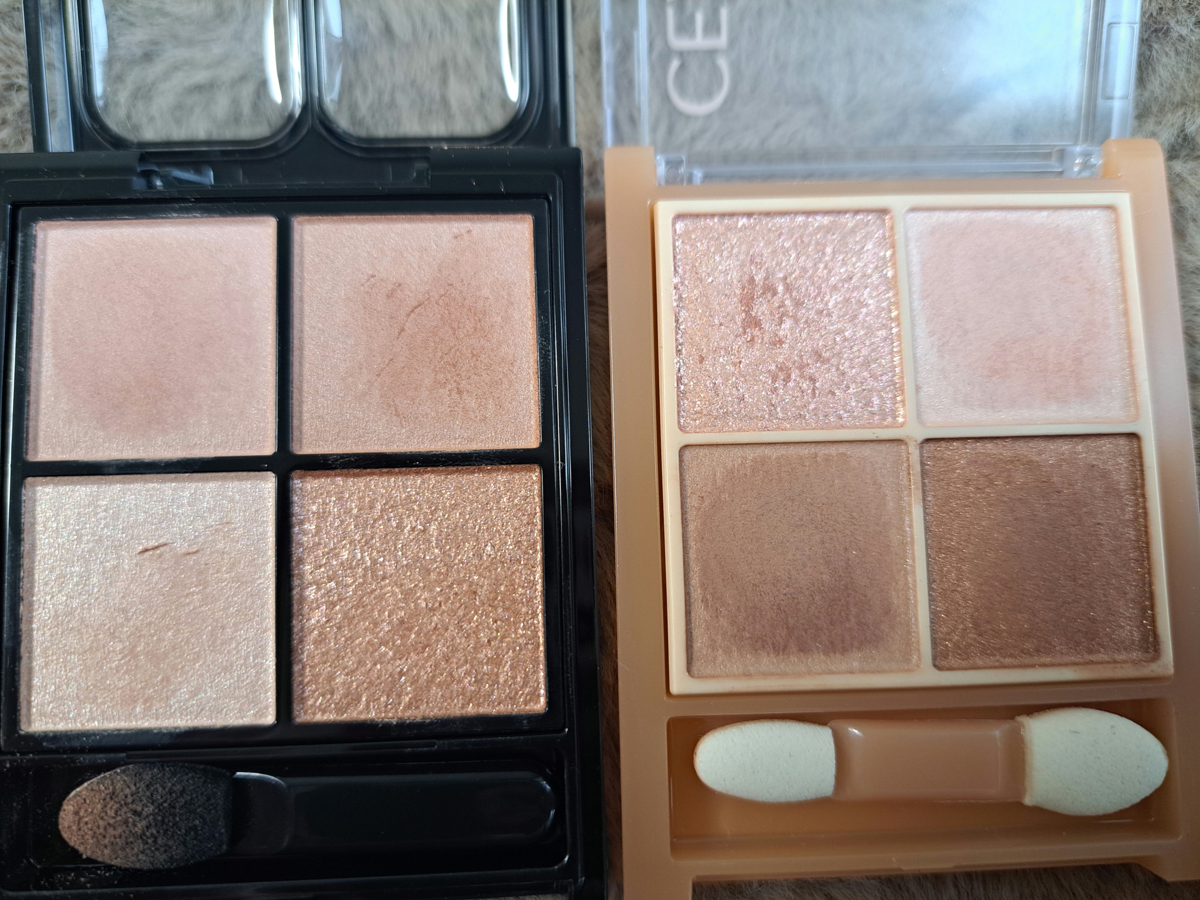 シナモンとグレージュはとても似てる!! グレージュといってもブラウンベージュっぽいから、イエベ春だけど問題なく使えてる! 相当淡くて薄め すっぴん風メイク、色素薄い系メイクにぴったり。 これまで濃いアイシャドウばかり使ってたから、使い方になれるまで時間かかりそう