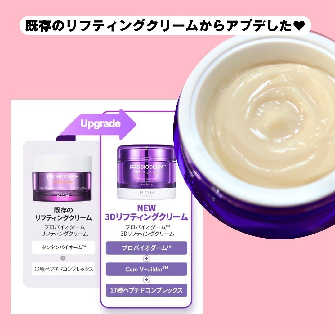プロバイオダーム™ コラーゲンリモデリングセラムはみずみずしいテクスチャーで使いやすい!もちもち仕上がりのお肌になってくれました! バイオヒールボ プロバイオダーム 3Dリフティングクリームは別名タンタンクリームで有名のクリーム💜こっくりテクスチャーでしっとりハリ肌になってくれました! ダブルで使って弾力あるお肌を目指したい💜