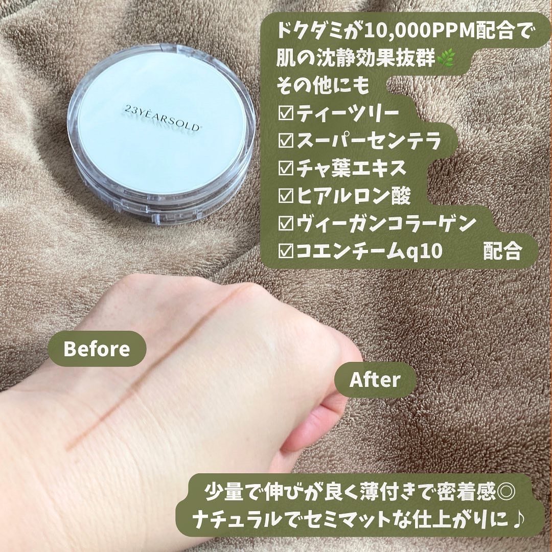 鎮静効果、ドクダミ成分が10,000ppm 配合されている肌悩みを解決してくれるクッションファンデ! 低刺激皮膚科テスト済みで敏感肌の方でも安心して使用できるのが嬉しい! テカリにも強くて長時間メイクの時も安心!