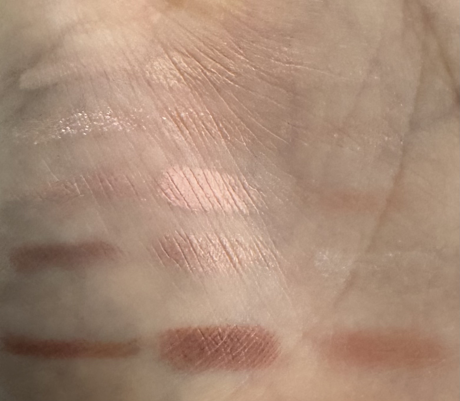 とにかく可愛らしいピンク色が集まったアイシャドウパレットです😭✨ 可愛らしい、甘いという言葉がぴったりだと思います! 色々な角度、明るさで撮影してみました! アイシャドウの隣に置いた写真が一番実際に見た感じに似ているかな?と思います! 743👉大人っぽいピンク、上品、大人っぽい可愛さ
