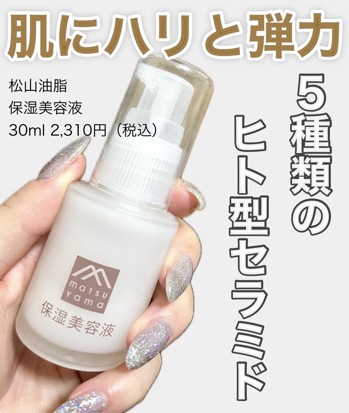 松山油脂さんめちゃくちゃ優秀で、私の肌にとっても合ってた… もう松山油脂の虜🥹 けどこれならニキビもできず、翌日までしっかり潤ってくれてる。 公式サイトには、 5種類のヒト型セラミドを20%増量してリニューアル! さらに、水分保持を高める大豆由来成分と、肌を柔らかく保つスクワランを配合。