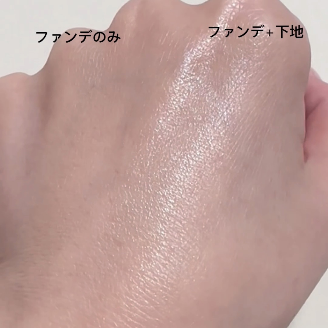 手元でつけるともはや違う色くらいベースで結構変わりました みずみずしくサラッとしてて透け感があるベース 細かいパールに色がついてる感じでがっつり色がつくわけじゃないけど印象をガラリと変えてくれます EX-1しのばせラベンダー 青み吸いにぴったり 透明感と青みをプラスしてくれる
