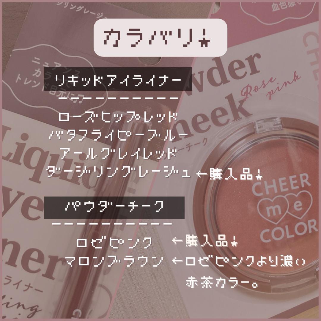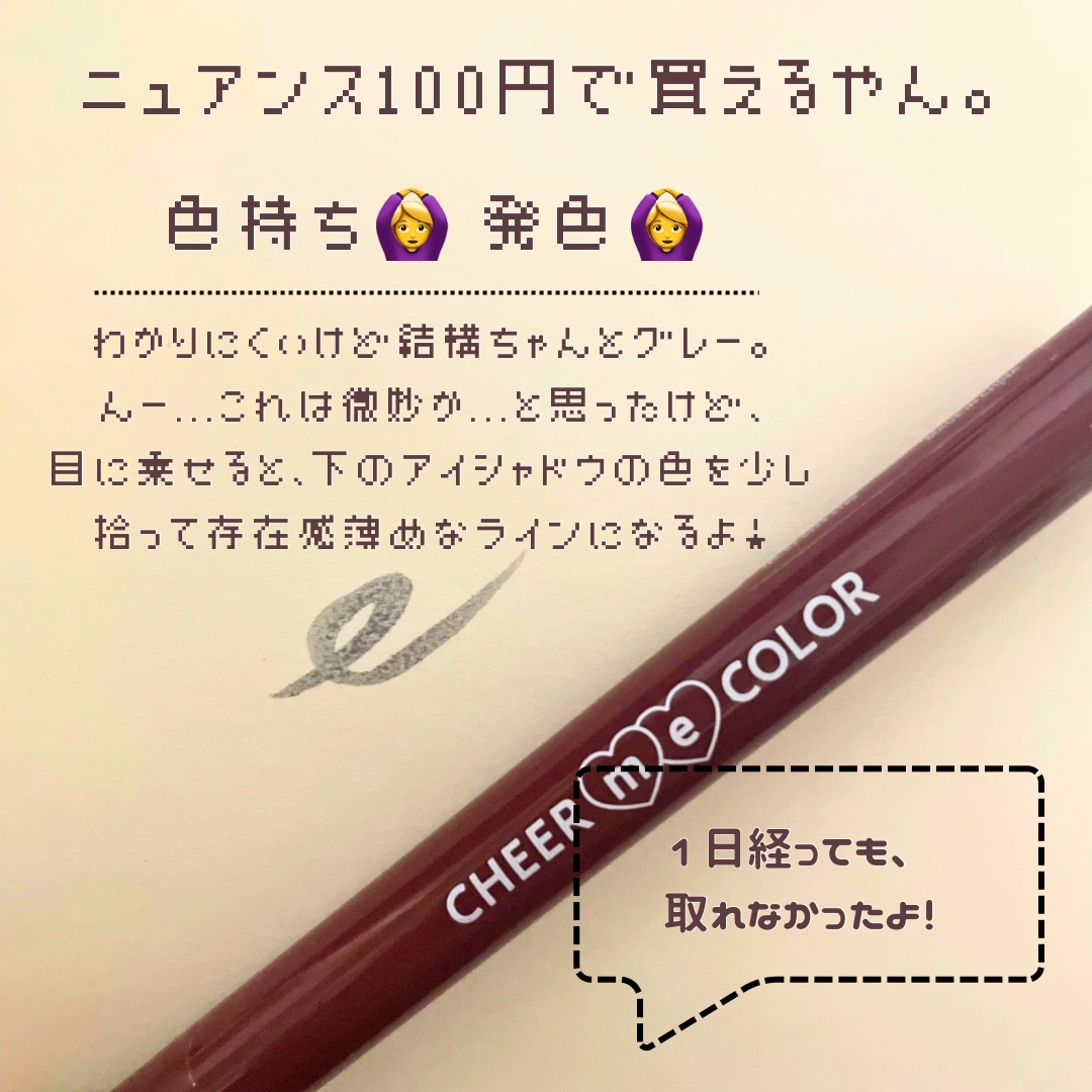 CHEERmeCOLORふたえライナーセリアで購入しました.ᐟ.ᐟ濃すぎず薄すぎず、すごくナチュラルなふたえラインが描けちゃう🙌涙袋の影にもいい感じです✨️パケも可愛いし、ペン先が細くて描きやすいᝰ✍🏻𖤐ペンが乾きやすいので、そこはやっぱ10...